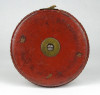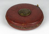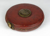 [1H599/X099] Kemény bőrtokos mérőszalag 20 m-es, fém részei sárgarézből készültek. Az első cca 50 cm hiányzik róla. Szélesség: 12 cm Súly: 0.31 kg
