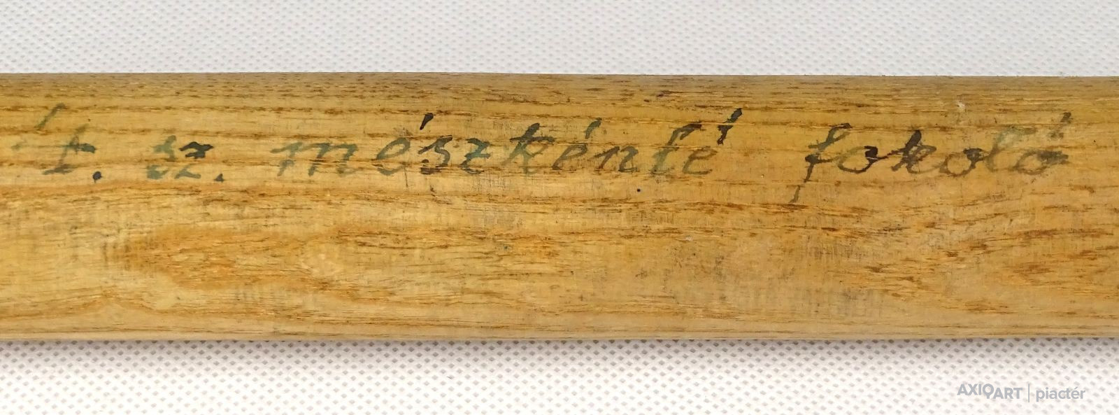 [1Y029/Z018] Olaj farost festmény, üveglap mögött, hibátlan képcsarnokos keretben. Hátoldalán Képcsarnok Vállalat papír címkéje: A művész neve: SCHÉNER MIHÁLY A kép címe: TÁJ Magasság: 66.5 cm Szélesség: 86 cm Súly: 6.54 kg Schéner Mihály festő, grafikus, szobrász, keramikus, bábtervező Medgyesegyháza, 1923-01-9 Elhalálozott: Budapest, 2009. május 11. Honlap: http://www.kormendigaleria.hu/kiadvany.html 1942-1947: Magyar Képzőművészeti Főiskola, tanára: Rudnay Gyula. 1978: Munkácsy-díj; 1984: érdemes művész; 1989: kiváló művész; 1995: Kossuth-díj. 1992-től a Magyar Művészeti Akadémia, 1993-tól a Széchenyi Irodalmi és Művészeti Akadémia tagja. 1956-ig tanított. 1982: Nagyatádi Faszobrász Alkotótelep, 1985: Nemzetközi Acélszobrász Alkotótelep, Dunaújváros. A stílusában felismerhető, mégis sokféle műtárgyat létrehozó ~ gazdag, állandóan alakuló életműve a folyton változó világban helyét kereső, az alkotói szabadságot megvalósító XX. századi képzőművész példázata lehetne. Magát expresszív-szürrealista alkotónak nevezi. Egyaránt dolgozik festékkel, textillel, fával, fémmel. Rajzol, szerkeszt, farag, épít, gyúr, varr és ragaszt, felhasználja a mézesbábok öntőformáit. Festő, rajzoló, textilszobor- és bábkészítő, fazekas, asztalos, esztergályos. Háromlépcsős folyamatban gondolkozik: rajzban tervez, majd fest, szobrot készít, “formába önt”, mindig a végső plasztikai megoldást keresi. Ami állandó és mégis játékosan változékony megjelenésű Schéner művészetében, az a gyermekkori emlékek által meghatározott népi mesterségek iránti tiszteletet kifejező motívumkincs, a tárgyi folklór formakészlete, amely már-már kézjegyként ismétlődik munkáin. Mitologikussá nőtt képzelete új lényeket teremt, pl: a Pigulát, amely disznótestű, emberfejű teremtmény. Schéner festményein a szürrealista motívumokat konstruktív szerkezetbe rendezi, a geometriát és az organikus természeti motívumokat egyaránt beépíti műveibe. A népi, népművészeti formakincsből merített lovas huszárok, betyárok, szegénylegények cifra szűr mentéje, piros csákója, fekete csizmája, az önálló életet élő zsinórdíszek és mézeskalács bábok, a kiskocsik a gyermekkori vásárok, búcsúk színes forgatagába vezet. A primér motívumokat aztán felváltják a vastagon felhordott felületbe karcolt jelek, vonalhálózatok, amelyek a játszó gyermek homokba rajzolt ábráit, a pásztorember fába vésett üzeneteit, az ősember barlang falába rótt mágikus jeleneteit idézik meg. A művész pillanatnyi érdeklődésének megfelelően a színek búvópatakként tűnnek el és jelennek meg ismét. A 60-as években leginkább a formákkal való játék érdekelte, a festmények felülete egyre gazdagodott: a táblaképek felületén applikációk jelentek meg, vagy lemállasztott rétegek hagyták maguk után hiányukat, motívumok nélküli ősformák, archetipikus képzetek bukkantak fel művészetében. A véletlenszerűnek látszó rétegekkel való játék azonban tudatos komponálás eredménye, amely később nyilvánvaló ritmusnak és formai szerkesztettségnek adja át a helyét, mint a Törvénytáblák c. sorozaton. A különböző művészi kifejezési formák egymásra termékenyítő hatással vannak, át- meg áthatják egymást. Textilszobrai, amelyekkel új műfajt teremtett, ugyanazzal az automatikus, expresszív-szürrealista módszerrel készülnek, mint festményei. A hagyományosan a népművészetben alkalmazott anyag, a filc lehetőséget ad a népi formakincs felelevenítésére, amely azonban a művész különös szürrealista átiratában jelenik meg. A szívekkel kivarrt, zsinórdíszes Posztókotlós c. művén mézesbábok lógnak, hátán huszárok lovagolnak. Egész sor textilből készült kéz-plasztikát alkot, amelyeket az ujjakra rávarrt díszekkel öltöztet, személyesít meg. A színes-különös világból aztán ~ újra puritán képi és formai rendbe juttatja el a nézőt, majd nemsokára tépett, gyűrt, vágott, csorgatott, repedezni hagyott szenvedélyesen vonagló képi felületeket hagy hátra. Schéner készített apró gyermekjátékokat, térstruktúra-tereket, mászókákat is. A magyar népi formák mellett szürreális játékaiban gyakran alkalmaz görög mitológiai alakokat, “elkentaurosodott” lovakat, Gorgó-fejeket, sellőket, hárpiákat, Pán-ábrázolásokat. Schéner nemcsak saját művészetéről publikál, hanem művésztársairól is számos írása jelenik meg, elsősorban az Új Auróra c. folyóiratban, amelynek egy ideig főmunkatársa volt. Irodalom kiállítása, Magyar Építőművészet, 1962/4. Húsz év után, Művészet, 1965/4. BOZÓKY M.: ~, Tiszatáj, 1968/5. PERNECZKY G.: Nincs uborkaszezon, Élet és Irodalom, 1969. augusztus 8. BARÁNSZKY-JÓB L.: ~, Művészet, 1969/9. LÁSZLÓ GY.: ~ kaposvári kiállítása, Jelenkor, 1969/4. MAJOR M.: Pásztorok, betyárok, huszárok - kezek, Tükör, 1970. szeptember 15. FRANK J.: Bemutatjuk ~t, Élet és Irodalom, 1972. május 6. ról kiállítása ürügyén, Képzőművészeti Almanach, Budapest, 1972 Sötétkék kokasok, Élet és Irodalom, 1973. szeptember 9. MAJOR M.: ~ játékai, Élet és Irodalom, 1974. július 27. BARTA J.: Egy különös művész, Alföld, 1974/6. VADAS J.: Szárnykészítők, Élet és Irodalom, 1975. október 4. JUHÁSZ F.: A halál ellen játszani, Élet és Irodalom, 1975. május 17. PAP G.: Kincsek és műkincsek, Művészet, 1975/6. P. SZŰCS J.: Az utak kettéválnak, Művészet, 1978/3. Békési művészet, Művészet, 1978/7. SZAMOSI F.: ~ [kismonográfia], Budapest, 1978 VADAS J.: Játék a játékkal, Élet és Irodalom, 1979. augusztus 18. NÉMETH L.: ~ műveiről, Művészet, 1979/4. MIKLÓS P.: Mit akar ez a múzeum?, Művésze