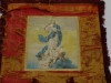 Antik bordó-arany templomi körmeneti zászló kétoldalt festett szentképekkel.