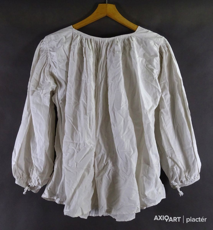 Nagyon régi, szép állapotú, lobogó ujjú, derekatlan, borjúszájú ing, lenvászon bőujjú ing, paraszting.