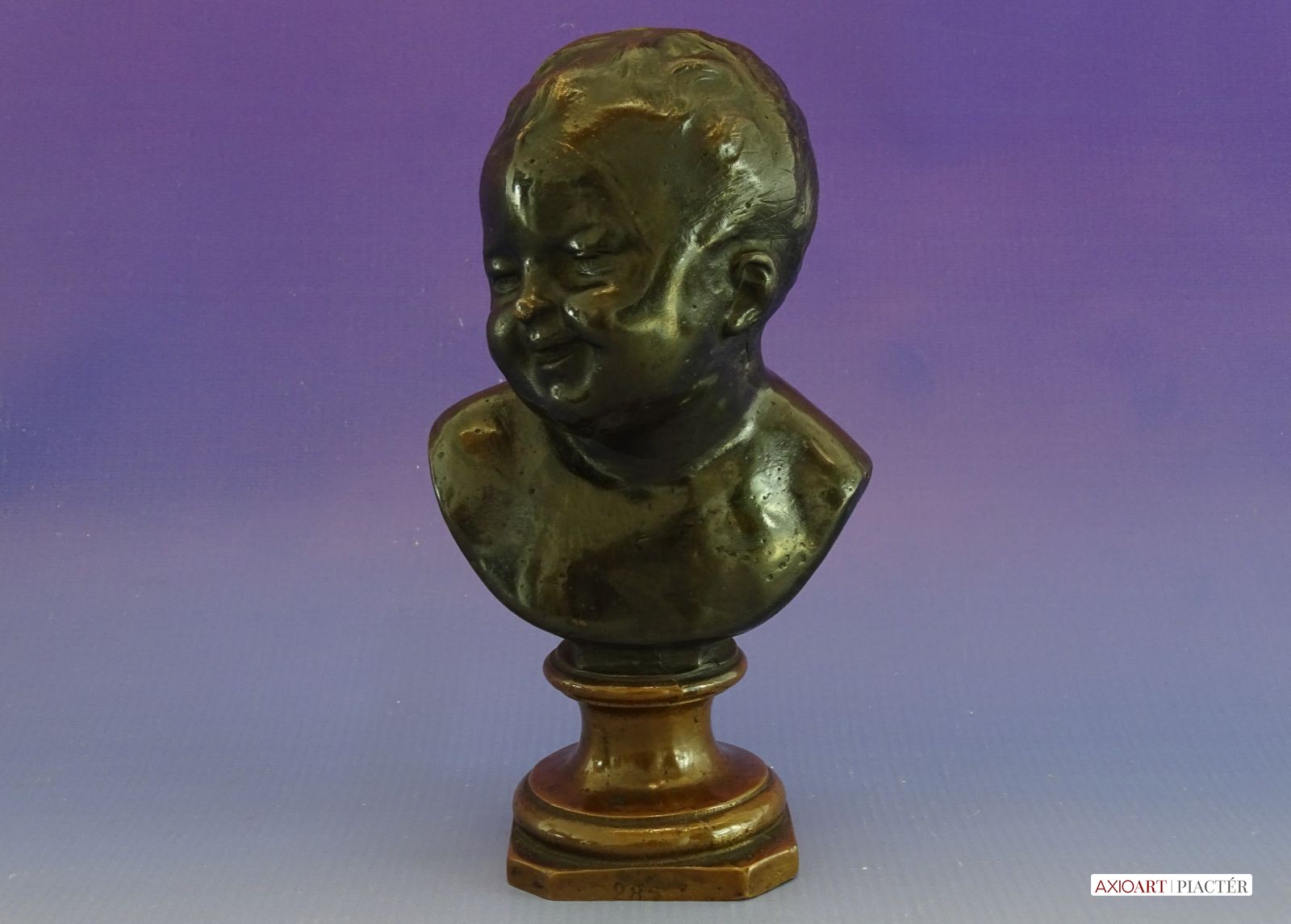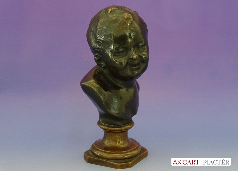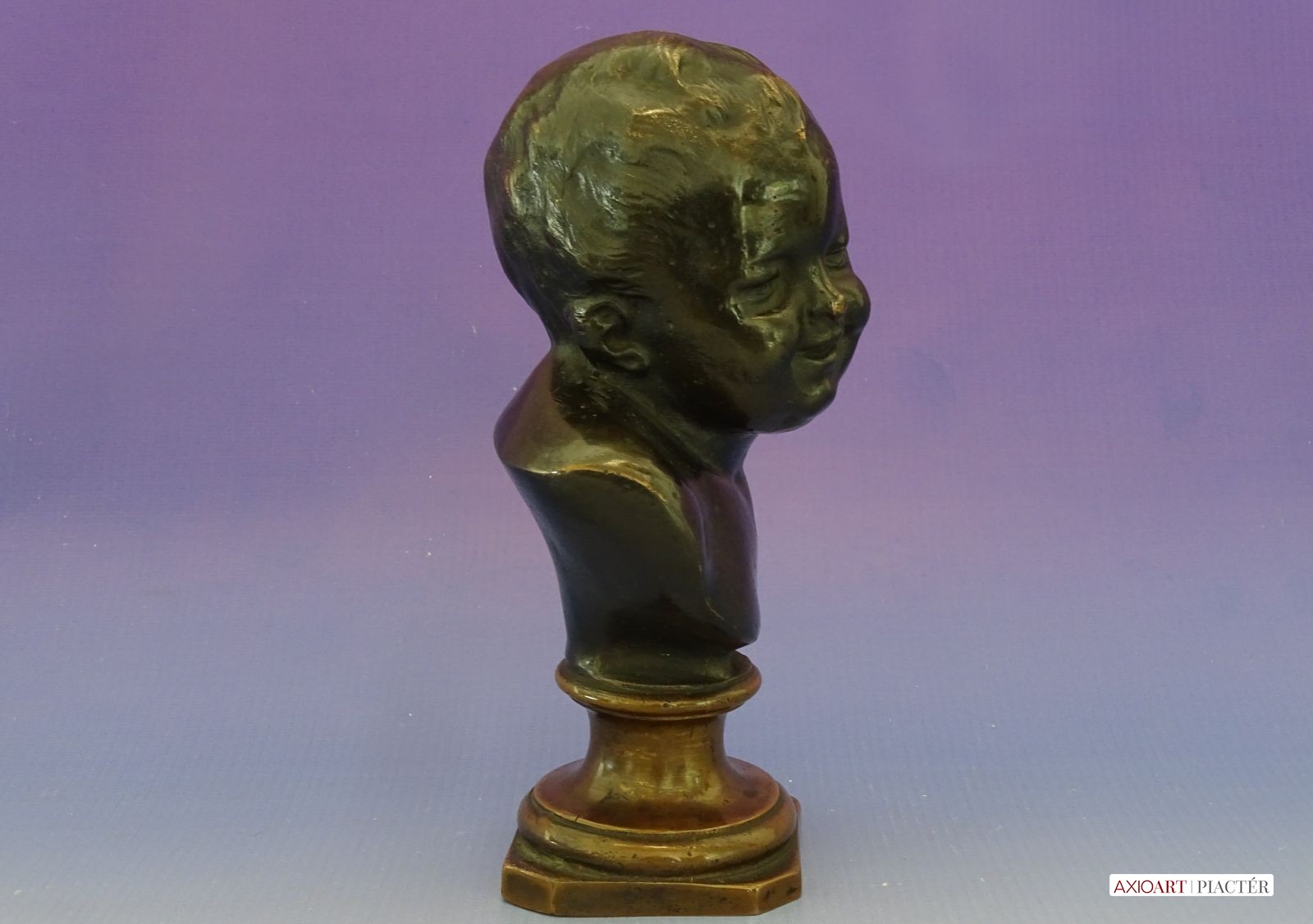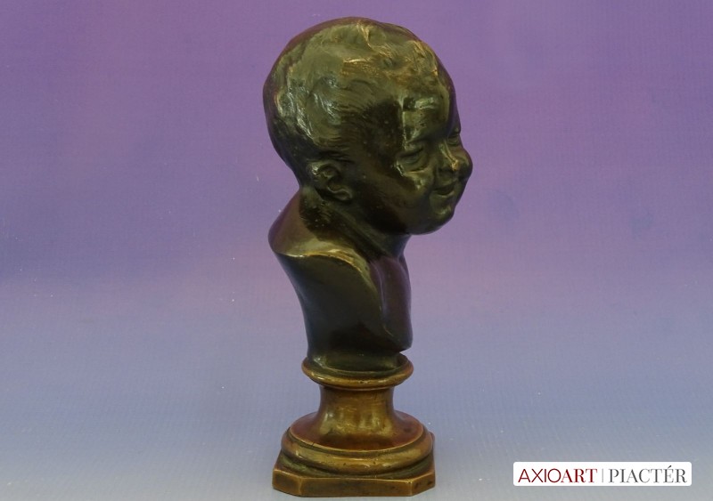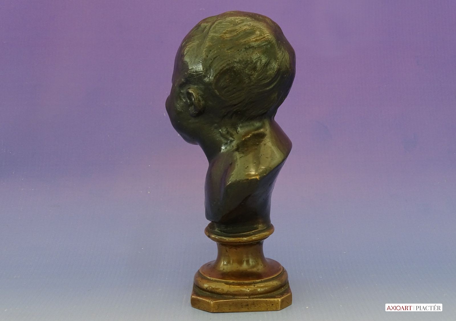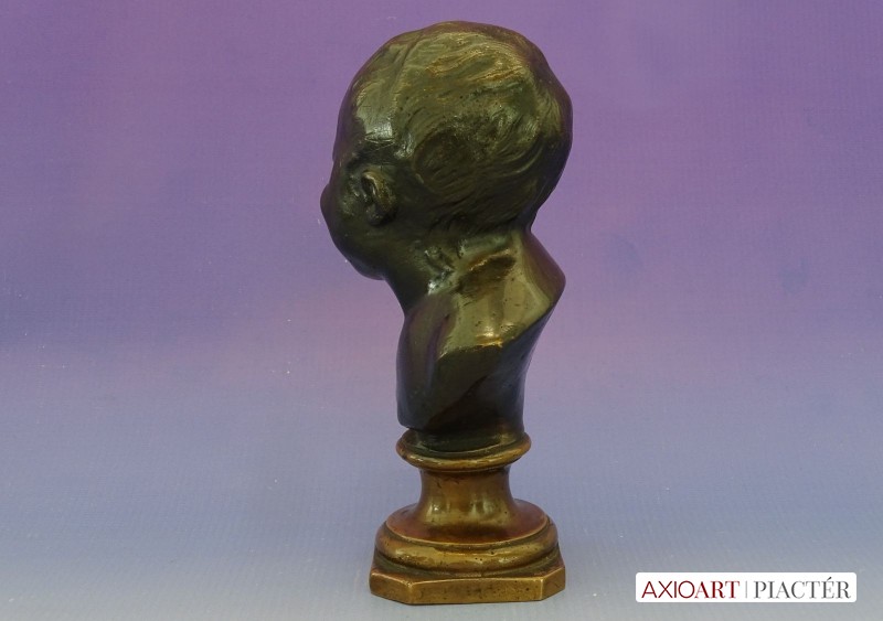 [0I449/UZ-K] Antik, hibátlan állapotú, fiú baba fej, mellszobor talapzaton. Magasság: 19 cm Szélesség: 10 cm Súly: 1.234 kg
