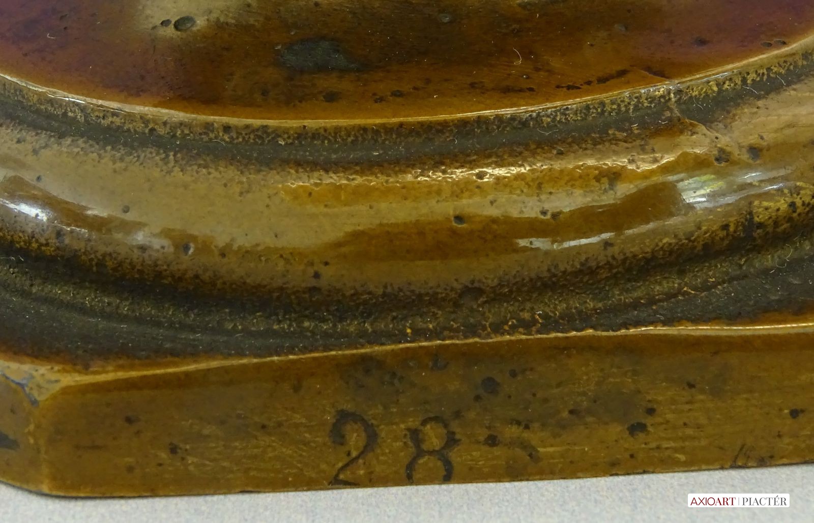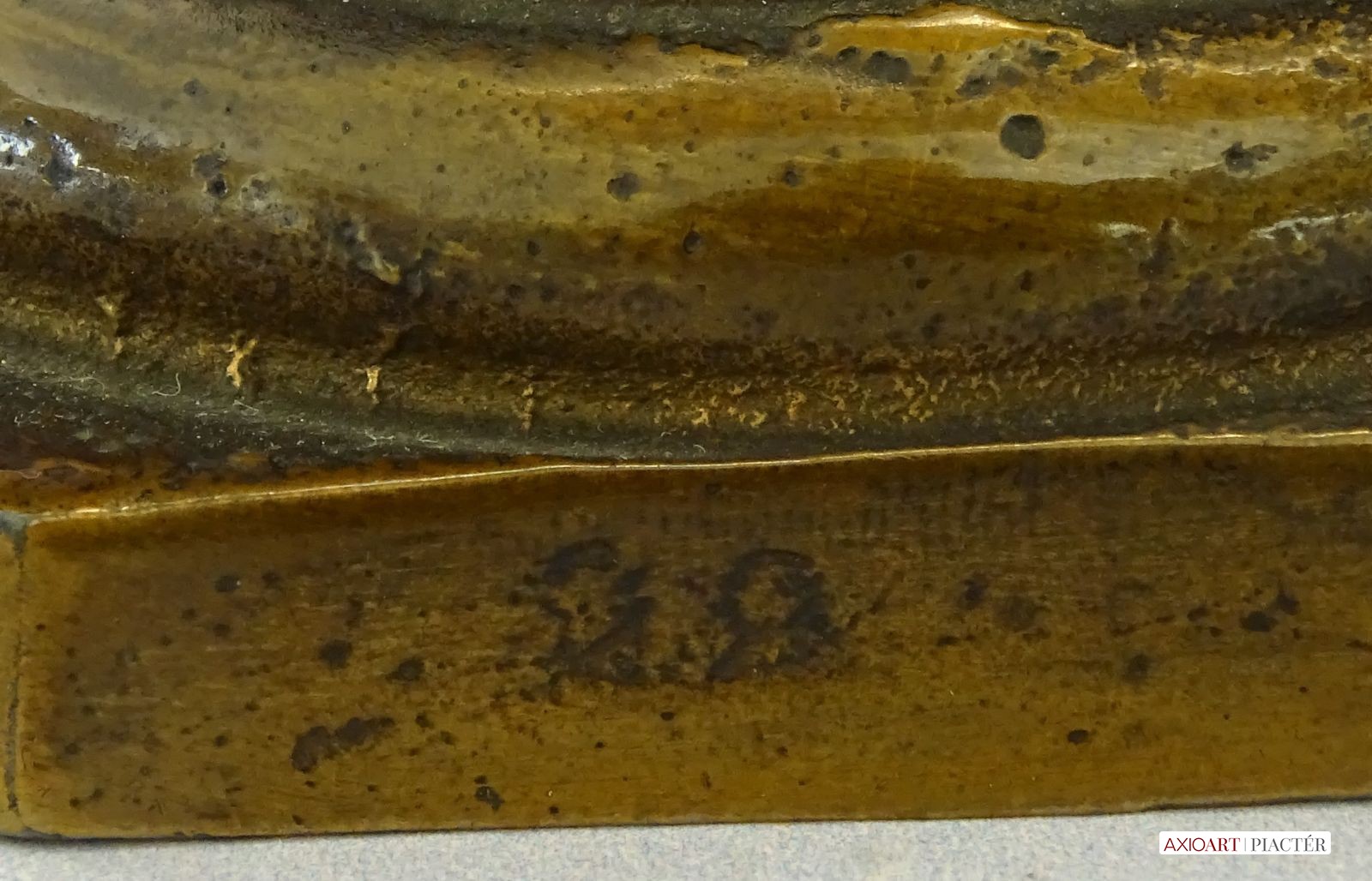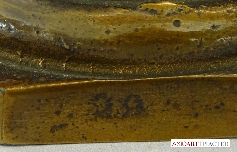 [1I390/X026] Hibátlan állapotú, jelzett bronz plakett szép bőrdíszműves bőr tokban. Elején plasztikus virágdíszítés mellett jelzés: KL Hátoldalán felirat: A KISZ. KIVÁLÓ PROPAGANDISTÁJA Súly: 0.485 kg Kutas László szobrász Budapest, 1936-04-17 Szerző: Matits Ferenc Gimnazistaként Sopronban Ágoston Ernő szabadiskolájában sajátította el a rajzművészet alapismereteit, majd 1954 és 1960 között a Magyar Képzőművészeti Főiskolára járt, ahol Gyenes Tamás és Pátzay Pál voltak a mesterei. Érzékletes mintázás, jó formaérzék, szellemes komponálás, választékos anyaghasználat tünteti ki plasztikai működését. A realista hagyományokra épülő, egyéni stílusát tükröző kő és bronz köztéri szobrokon kívül narratív kisplasztikákat, érmeket készít. A Magyar Nemzeti Bank pályázatain 11 alkalommal nyert emlékpénz készítésére megbízást. A firenzei Giorgio Vasari Nemzetközi emlékérem pályázaton 1974-ben I. díjat kapott, a Sportérem pályázaton 1975-ben II. és III. díjat, az Ezüstgerely pályázaton 1976-ban különdíjat érdemelt ki. 1979-ben a ravennai Dante Biennálé ezüst érmét, 1991-ben és 1995-ben pedig a soproni Országos Éremművészeti Biennálén Roisz Vilmos-díjat nyert. 1990 óta zsűritag a Ravennai Kisplasztikai Dante Biennálén. Figurális kisplasztikái egy-egy történetet mesélnek el. Az alakok kifejező megmintázása, környezetbe helyezése, dinamikus megfogalmazása elgondolkodásra késztetnek. Alkotásai népszerűek a hazai, valamint külföldi gyűjtők körében és szereztek a művésznek világhírnevet. Irodalom (kat. bev., Országos Széchenyi Könyvtár Galéria, 1994) ESZES A.: Otthon útközben. Műteremlátogatás ~nál, Anna, 1994/7. KOVÁCS P.: A tegnap szobrai, Szombathely, 1992 VEKERDY T.: ~ és szobrai, Várhely, 1997/3. Film BAYER I.: Művészportré, Civil Kurázsi Műsor, MTV, 1994-5. Egyéni kiállítások Egyéni kiállítások 1976 • Festőterem, Sopron • Haydn Művelődési Ház, Fertőd 1983 • Bank für Gemeinwirtschaft, Regensburg • Haydn Művelődési Ház, Fertőd • Munkás Művelődési Központ, Paks 1990 • Galerie Meerbusch, Düsseldorf 1993 • Városi Kórház Galéria, Grevenbroich (D) • Galerie Greve, Hamburg 1996 • G. P. Breughel, Venlo (gyűjt.) 1998 • Galéria, Tamási. Válogatott csoportos kiállítások Válogatott csoportos kiállítások Őszi Tárlatoknak és 1977-1999 • Országos Éremművészeti Biennáléknak. 1977-től vett részt a FIDEM nemzetközi kiállításain. A ravennai Dante Biennálén1975-ben, 1977-ben és 1979-ben vett részt. 1964 • Vásárhelyi Tárlatok 1954-1963, Magyar Nemzeti Galéria, Budapest 1968 • Az új Kecskeméti Művésztelep, Katona József Múzeum, Kecskemét 1970 • Kiállítás a Szakszervezetek Országos Tanácsa képzőművészeti pályázatára érkezett alkotásokból, Magyar Nemzeti Galéria, Budapest 1972 • 6. Balatoni Nyári Tárlat, Balatoni Múzeum, Keszthely 1974 • Vásárhelyi Tárlatok 1964-1973, Magyar Nemzeti Galéria, Budapest • G. Vasari nemzetközi Érembiennálé, Firenze 1976 • Balatoni Nyári Tárlat, Balatoni Múzeum, Keszthely 1979 • VI. Országos Kisplasztikai Biennálé, Pécs 1982 • Magyar mesterek, G. P. Breughel, Amszterdam 1990 • Ágoston Ernő tanítványai, Villamosipari Szakközépiskola Galéria, Sopron 1991 • Soproni Képes Céh Kiállítás, Collegium Hungaricum, Bécs • Soproni Képes Céh Kiállítás,Lajtaújfalu [Potzneusiedl] 1992 • Képes Céh Kiállítás, Lábasház, Sopron 1995 • Névjegy-érem kiállítás, OTP Galéria, Budapest 1996 • Képes Céh Kiállítás, Lábasház, Sopron. Művek közgyűjteményekben Művek közgyűjteményekben Királyi Éremtár, Stockholm Liszt Ferenc Múzeum, Sopron Városháza Gyűjteménye, Firenze Windsor Palota Gyűjteménye.  Forrás: artportal.hu