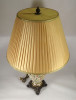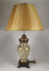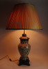 Hibátlan állapotú nagy méretű gyönyörű kézzel festett majolika lámpa. Szépen kimunkált áttört bronz talpon áll. Rajta normál állapotú bura. Működőképes állapotban van. Kettő darab nagy méretű (E27) izzó való bele.