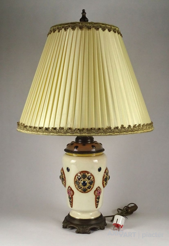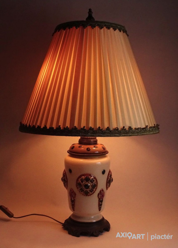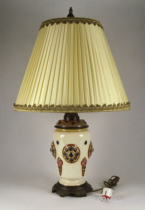 Antik bronz talpas Zsolnay majolika lámpa 73.5 cm