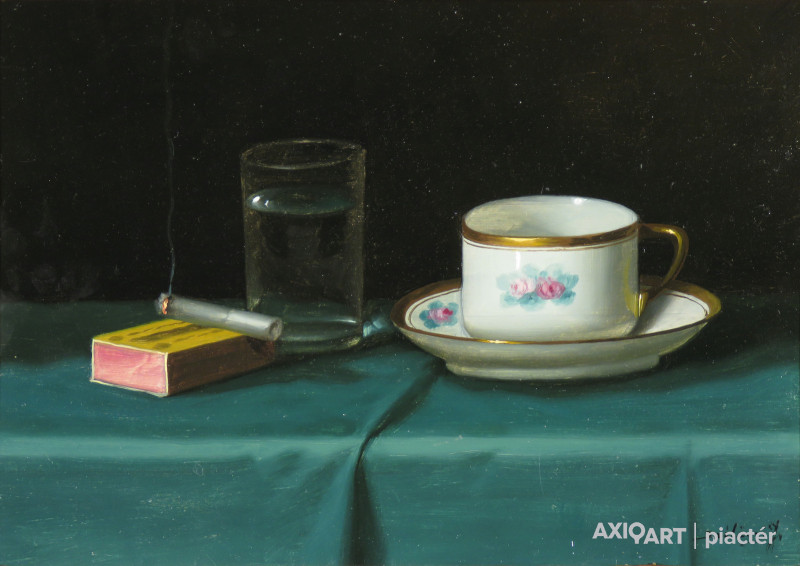 [FKD027/Bp4/60] A kép mérete: 60 x 82 cm keret nélkül. Készült: Olaj, pasztell, Papír (kasírozva) A kép Szabó Zoltán Angyalföldi (Budapest, 1929) alkotása. Jelezve jobbra lent "Szabó Z 73" A festmény jó állapotban van. Keret: Ép Magyar festők és grafikusok életrajzi lexikona I-II. Festő. Rajkai György beszélte rá, hogy jelentkezzék felvételre a Képzőművészeti Főiskolára. 1948-49-ben a Dési Huber-szakkörben rajzolt, festett Gráber Margit vezetésével. 1950-ben jelentkezett a Képzőművészeti Főiskolára, ahol 1951-ben kezdte meg tanulmányait Fónyi Géza, Barcsay Jenő és Domanovszky Endre keze alatt. 1953-54-ben a főiskola megvált tőle, lekerült Tatabányára, ahol a művésznövendékek számára művésztelepet létesítettek. Számos műve kapcsolódik a tatabányai periódushoz, amelynek élményéből még évek múlva is bőven merít. 1955-ben visszakerült a főiskolára, ahol 1958-ban fejezete be tanulmányait. Ezt követően két évig - a Fiatal Művészek Stúdiójának tagjaként - a stúdió műtermében dolgozott. 1960-63 között Derkovits-ösztöndíjban részesült. Kiállító művészként első ízben 1958-ban a VII. Magyar Képzőművészeti Tárlaton szerepelt jelentősebb anyaggal. Ettől kezdve minden nemzeti tárlaton, a Fiatal Képzőművészek Stúdiójának bemutatóin, jelentősebb hazai és külföldön rendezett magyar seregszemléken részt vett alkotásaival (Ernst Múzeum, Műcsarnok, Tiszti Klub Budapest, Veszprém, Szolnok, Tatabánya, Vác, Győr, Kecskemét, Tallin, Berlin, Varsó, Belgrád, Párizs, Moszkva, stb.). Erőteljes formákkal komponált figurális kompozíciókat, portrékat, városképeket, csendéleteket alkotott olajban, pasztellben, szénnel és temperával. A Nyolcak, Nemes Lampért József és a korai Uitz Béla alkotások formai örökségének legrangosabb mai folytatója. A külföldiek közül Siqueiros és D. Rivera gyakoroltak rá nagy hatást, akik leginkább lehetnek expresszív stílusának mintaképei. Szabó végtelen humanizmusa, őszinte hite az alkotásban, a tiszta emberi kapcsolatokban és a szeretetben, az emberi lét himnuszává fokozódik vásznain. Monumentális, óriási lendület jellemzi alakjait, akár táblaképről, szénrajzról, akár monumentális munkáról van szó. Díjak: a Stúdió pályázatának I. díja; Munkácsy-díj; a Szolnoki Festészeti Triennále II. díja; Érdemes Művész. Sok murális alkotást is készített (Sátoraljaújhely, Csongrád, Baja, Bácsalmás, stb.). Alkotásai helyet kaptak a Magyar Nemzeti Galériában, a Legújabbkori Történeti Múzeumban és több vidéki képtárban. (Egri Mária: Szabó Zoltán, MÉ, H.J.: Műv. 1970/8, Műv. 1976/5, A.J.: Műv. 1985/2) Magyar festők és grafikusok életrajzi lexikona I-II. Műgyűjtők és kereskedők kézikönyve Festő. Művészeti tanulmányait a Dési Huber István szakkörben kezdte, ahol Gráber Margit korrigálta. 1950-ben jelentkezett Budapesten, a Képzőművészeti Főiskolára. Fónyi Géza, Barcsay Jenő és Domanovszky Endre voltak a mesterei. Siqueiros és Diego Rivera is nagy hatást gyakoroltak rá, akik leginkább lehetnek expresszív stílusának mintaképei. 1958 óta szerepel hazai és külhoni tárlatokon (Műcsarnok, Ernst Múzeum, stb.). 1960-63 k. Derkovits-ösztöndíjas volt. 1969-ben Munkácsy-díjjal tüntették ki. 1977-ben érdemes művész címet kapott. Végtelen humanizmusa, őszinte hite a munkában, a tiszta emberi kapcsolatokban, a szeretetben, az emberi lét himnuszává fokozódik vásznain. Monumentális, hatalmas lendület jellemzi figuráit, akár táblaképről, szénrajzról akár monumentális műről van szó. Sok murális munkát is készített (Sátoraljaújhely, Csongrád, Baja, Bácsalmás, stb.). A NYOLCAK, Nemes Lampért és a korai Uitz munkák formai örökösének legrangosabb mai folytatója. (MÉ, H.J.: Műv.-1970/8, Műv.-1976/5, A.J.: Műv.-1985/2) Magyar festők és grafikusok adattára Művészeti tanulmányait a Dési Huber szakkörben kezdte, majd 1951-1958-ban Fónyi Géza, Barcsay Jenő és Domanovszky Endre növendéke a főiskolán. 1958-tól minden fontosabb hazai és számos külföldi tárlaton részt vett. Kiállított többek között a Szovjetunióban, Bulgáriában, Jugoszláviában, az NDK-ban, Lengyelországban és Franciaországban. Több vidéki bemutató (Dunaújváros, Szeged, Kecskemét, Szolnok, Győr stb.) mellett 1970-ben az Ernst Múzeumban, 1976-ban a Műcsarnokban jelentkezett gyűjteményes anyaggal. 1976-ban önálló kiállítása volt Tallinban. 1978-ban az Ernst Múzeumban. A Kilencek alapító tagja, és valamennyi kiállításuk résztvevője. 1960-1963-ban a Derkovits-ösztöndíjat, 1969-ben Munkácsy-díjat, 1977-ben érdemes művészi címet kapott. - Művészetében központi helyet foglal el az ember. Végtelen humanizmus, őszinte hite a munkában, a tiszta emberi kapcsolatokban, a szeretetben az emberi lét himnuszává fokozódik vásznain. A Nyolcak formai örökségének legrangosabb mai folytatója. - Irod.: P.Sz.T.: Művész életrajzok. Bp. 1985.; Acsay Judit: Legszívesebben az eget festeném be. Beszélgetés Szabó Zoltánnal. Művészet, 1985. 2. Művészeti lexikon I-IV. Festő. 1951-58 között a Képzőművészeti Főiskolán Fónyi Géza, Barcsay Jenő és Domanovszky Endre tanítványa volt. 1958-tól állítja ki erőteljes formákkal komponált figurális kompozícióit (Almahámozók, Kesztyűs női portré stb.). 1965-ben sgraffitót készített egy sátoraljaújhelyi lakóházra. Művész életrajzok kortárs magyar képzőművészek 1958-ban kapott diplomát Fónyi Géza, Barcsay Jenő és Domanovszky Endre tanítványaként. Azóta minden fontosabb hazai rendezvény résztvevője, gyakorta kiállít külföldön is. Számos vidéki bemutató mellett 1970-ben az Ernst Múzeumban, 1976-ban a Műcsarnokban, 1983-ban a Tihanyi Múzeumban jelentkezett gyűjteménye