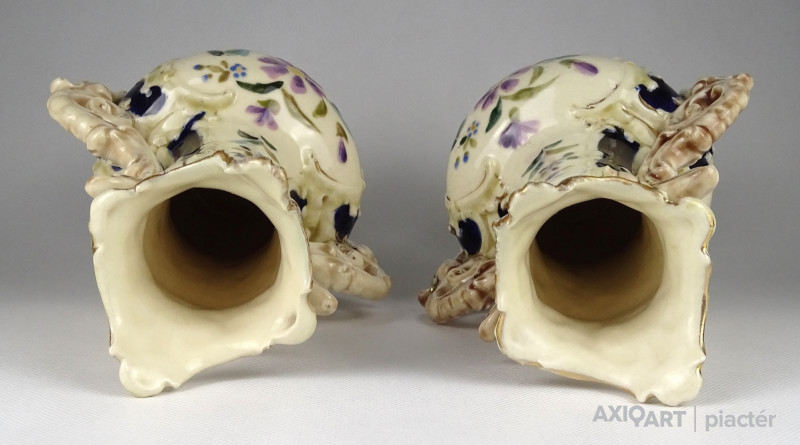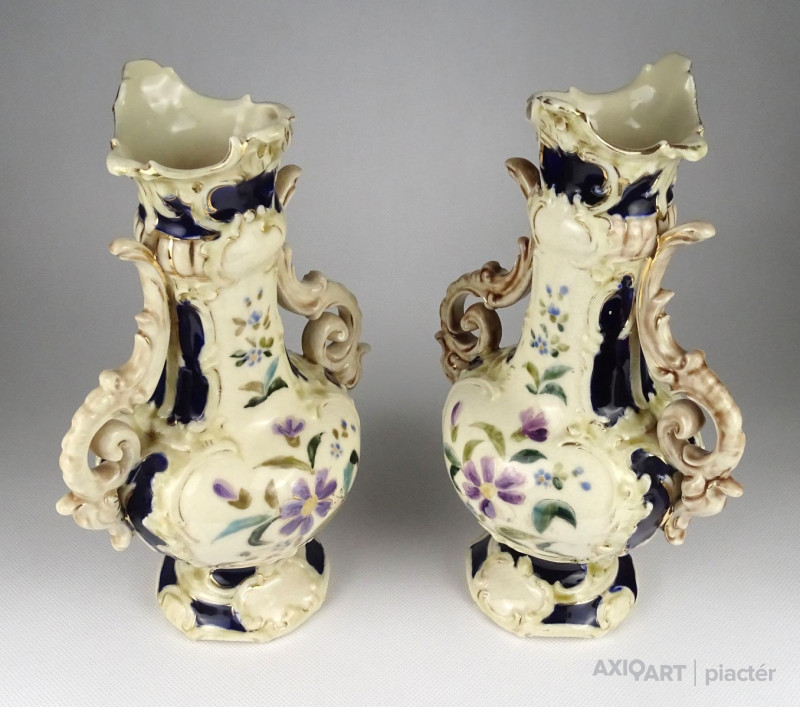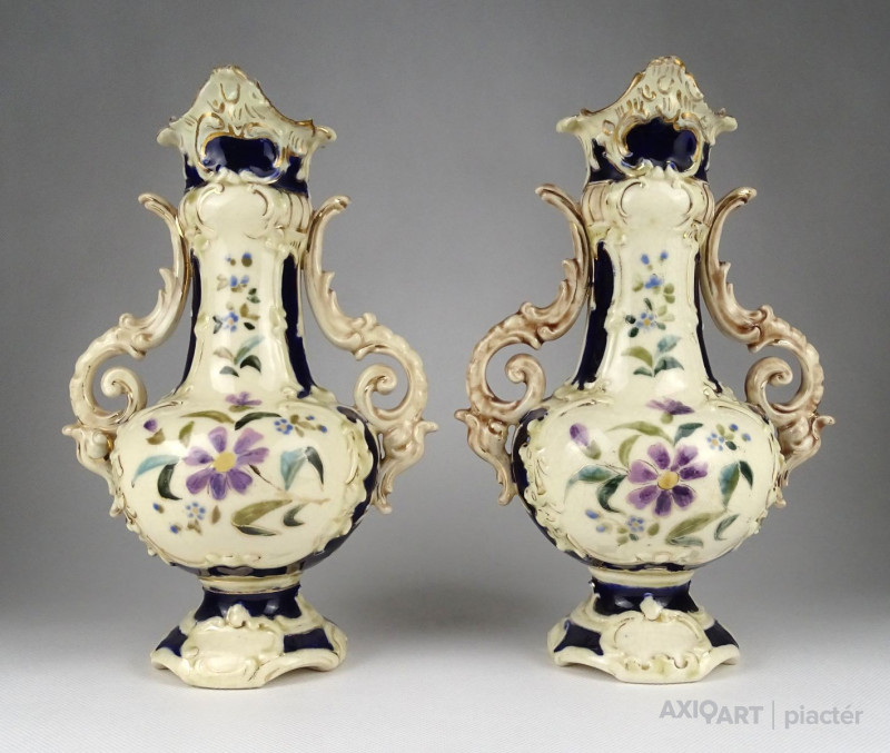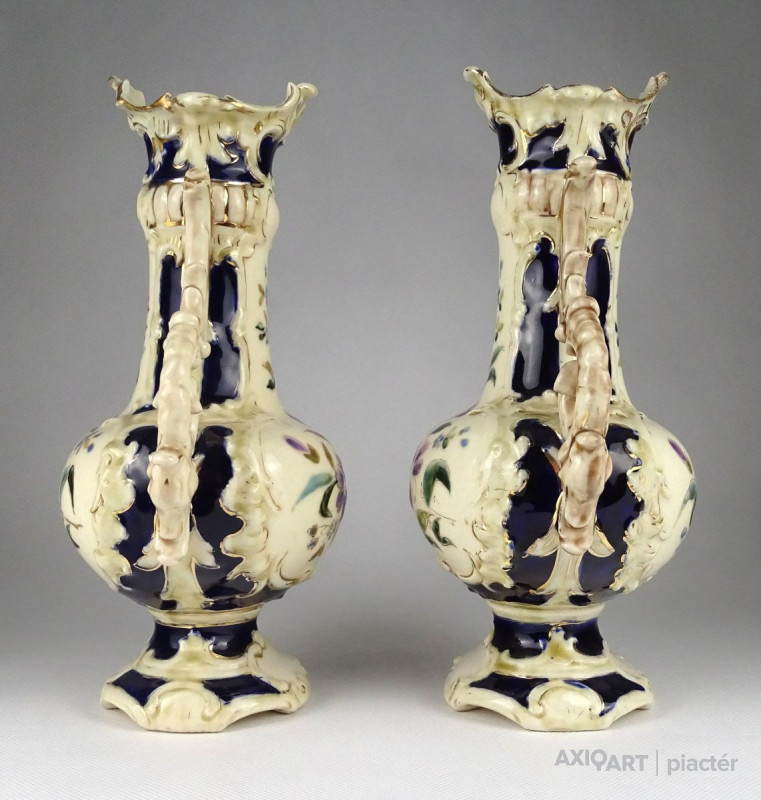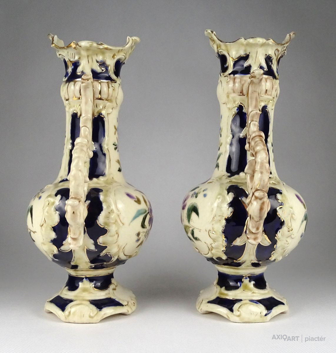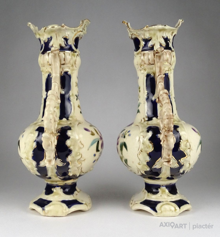 Antik Bruder Willner teplitzi majolika váza pár 27 cm