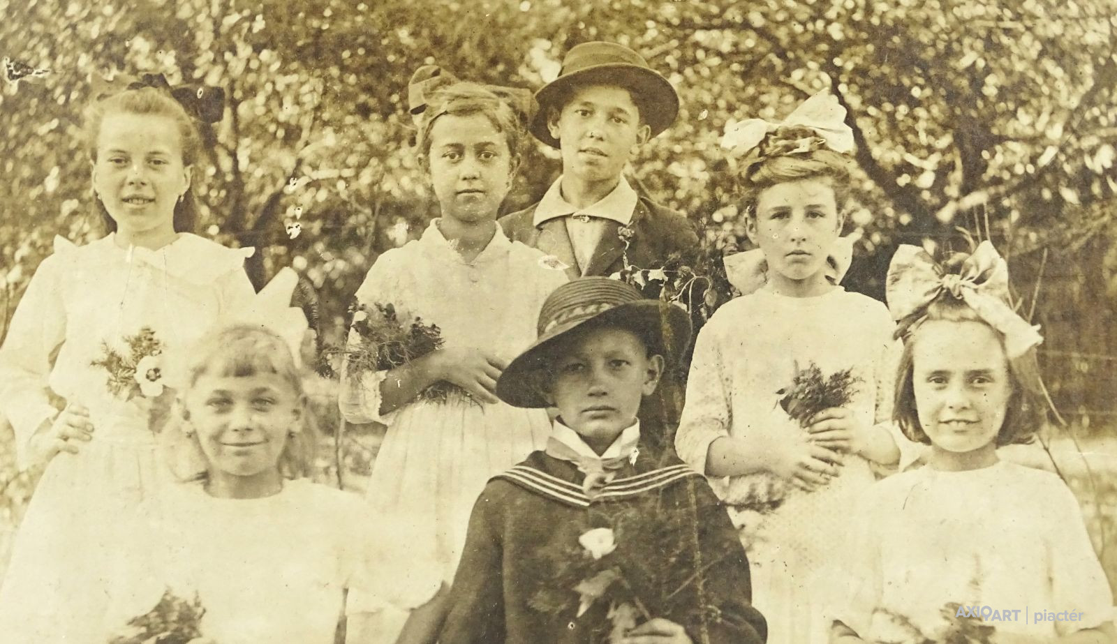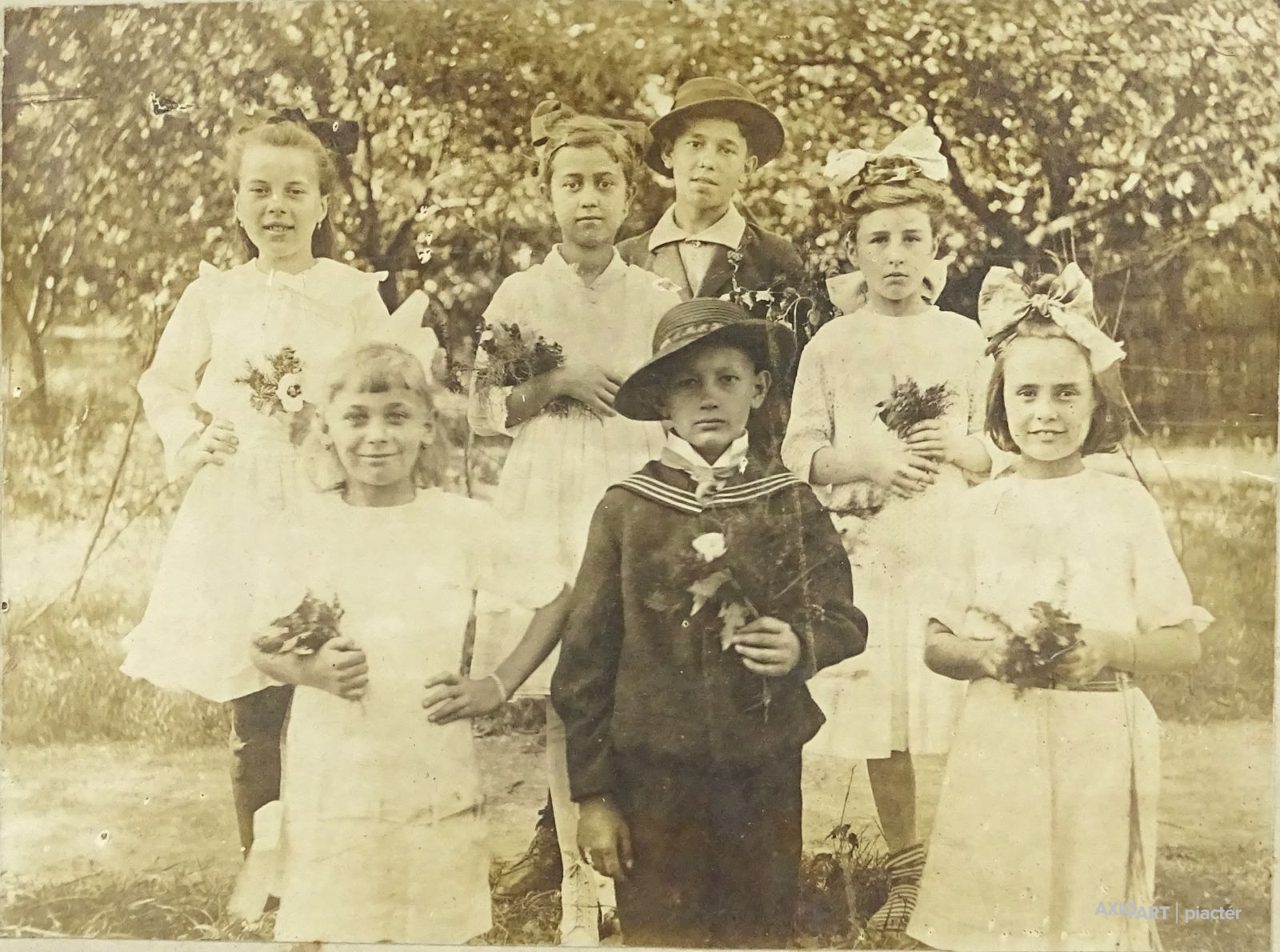 Antik zeneiskolai osztály fénykép, csoportkép az 1900-as évek elejéről.