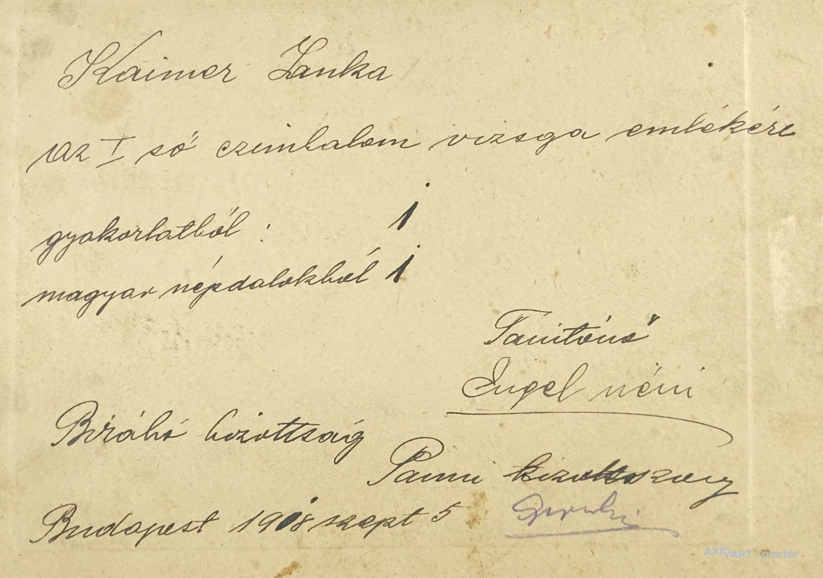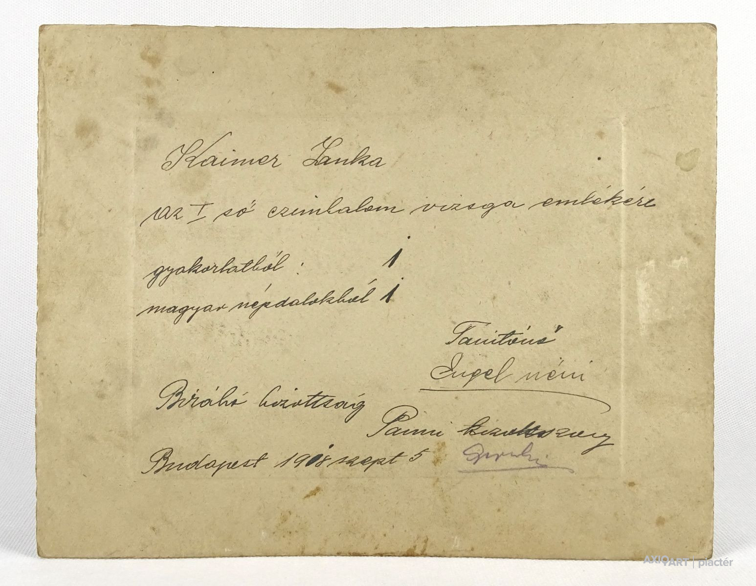Hátoldalán felirat: