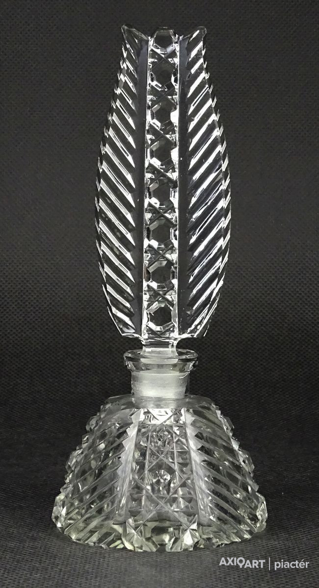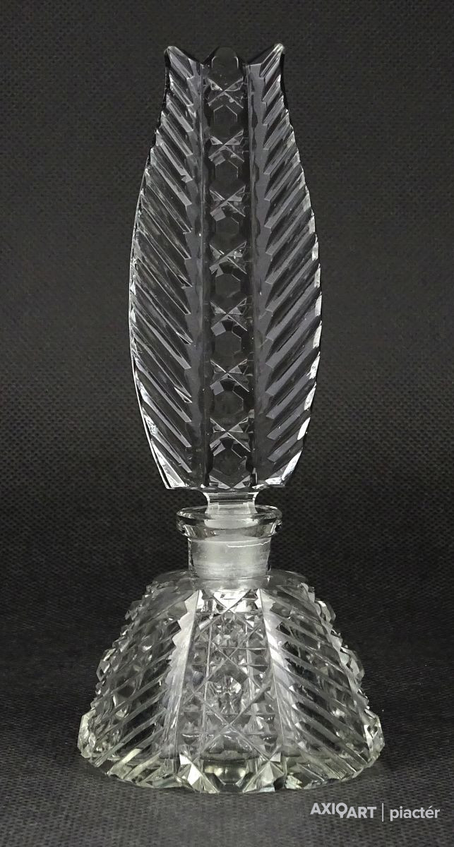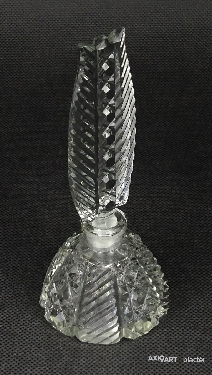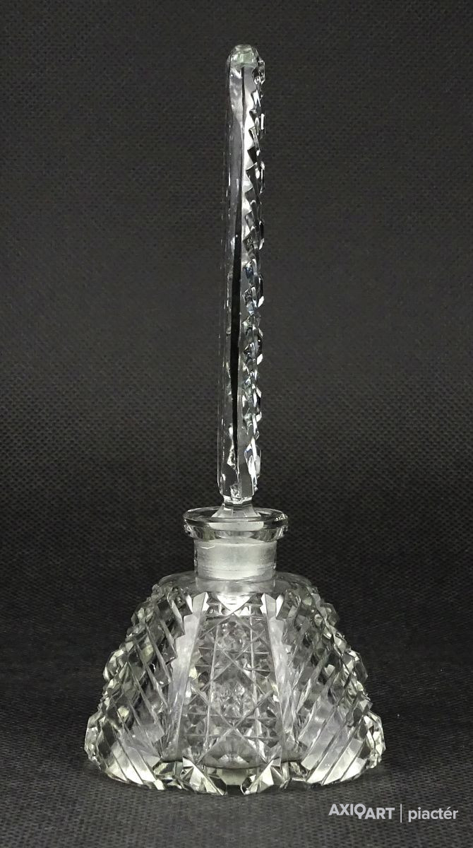Gyönyörű, szép állapotú, csiszoltüveg parfümös üveg, hatalmas csiszolt üveg dugóval.