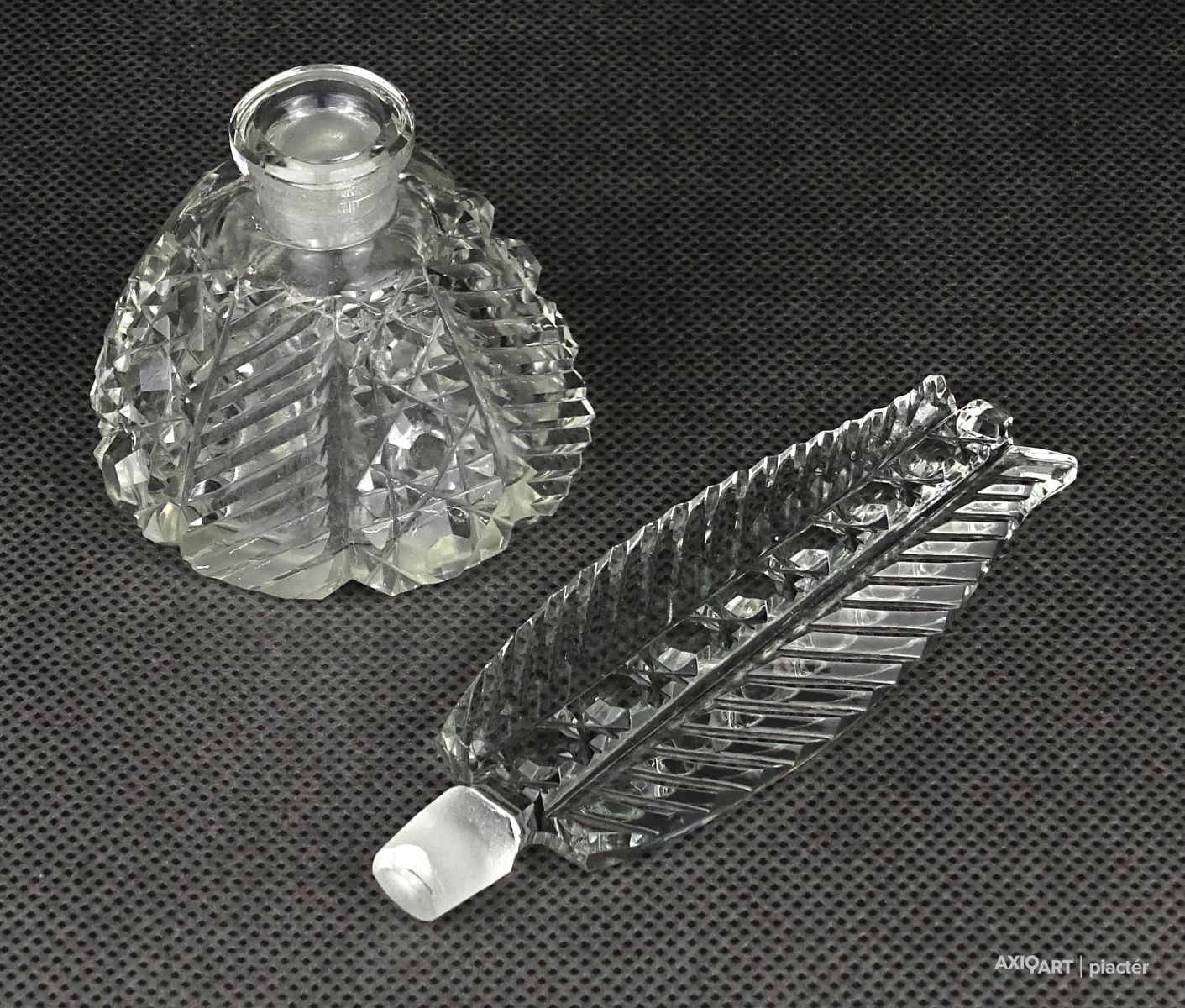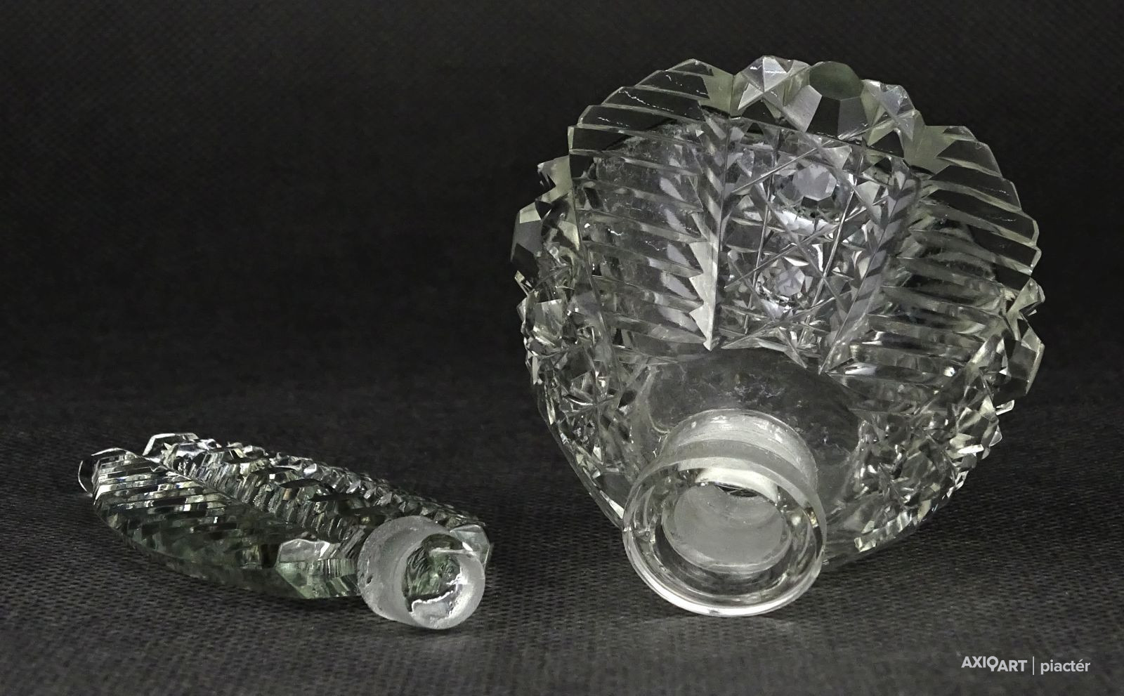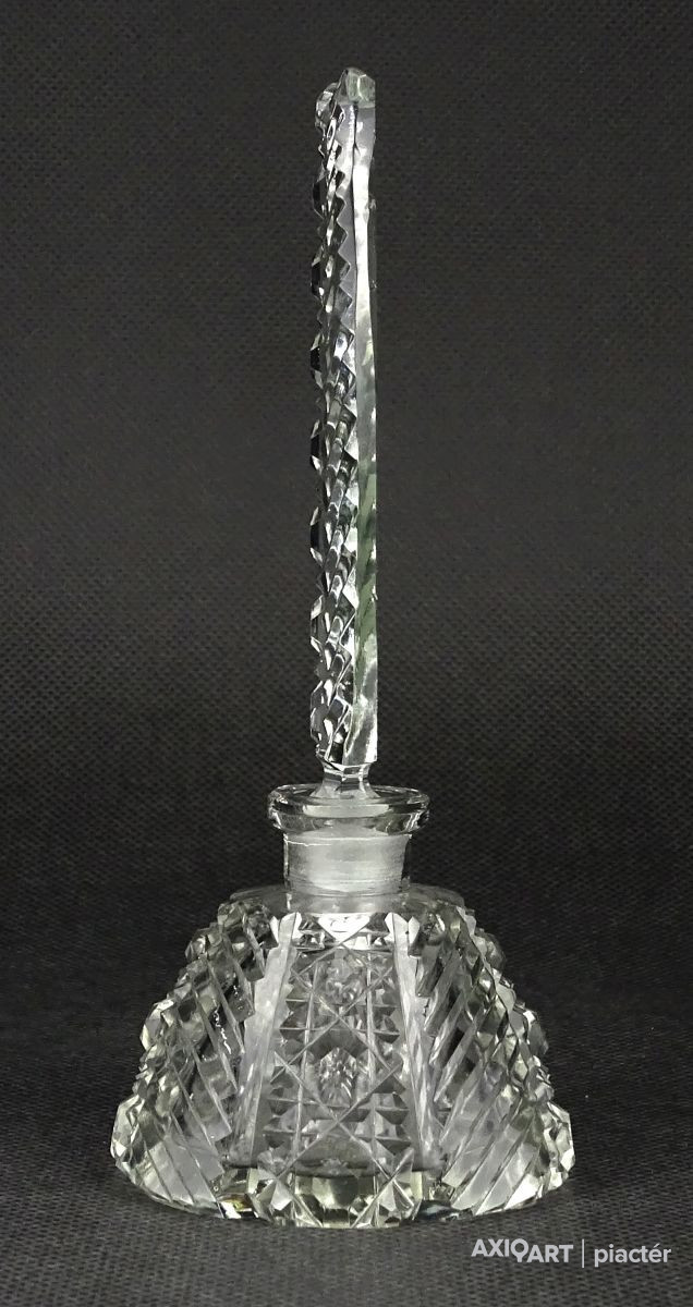 Gyönyörű, szép állapotú, csiszoltüveg parfümös üveg, hatalmas csiszolt üveg dugóval.
