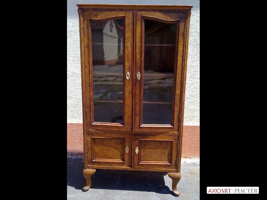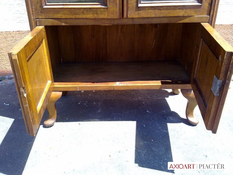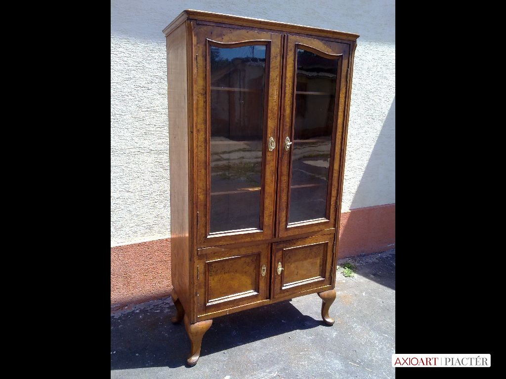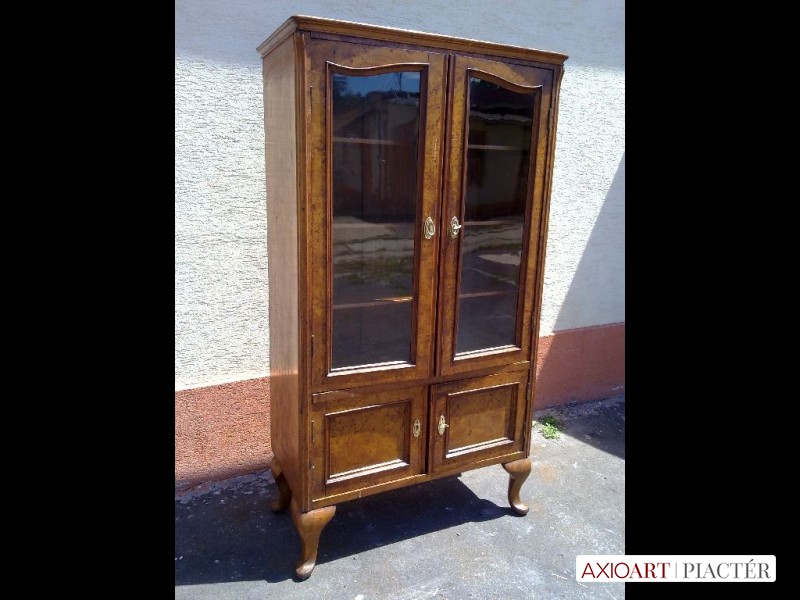 A vitrin felújítatlan, eredeti állapotban van, zárja és a zárcímek megvannak, a zár működik. Kulcs megvan hozzá.