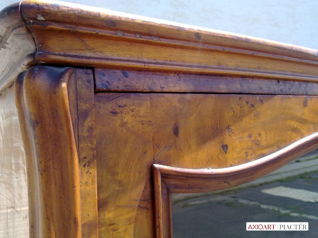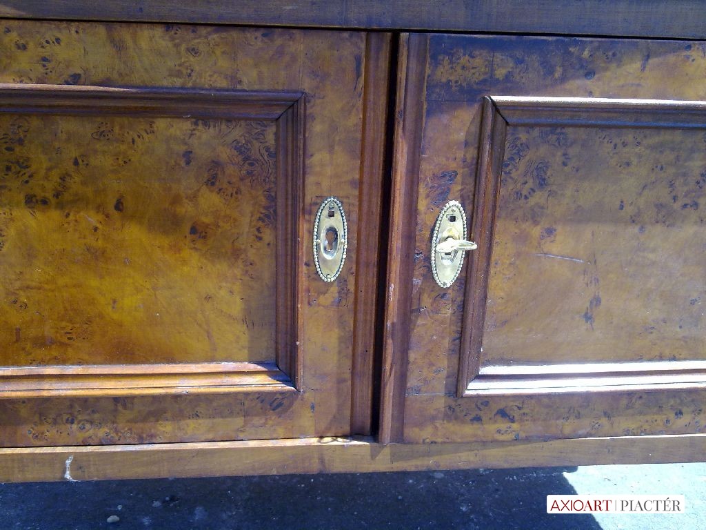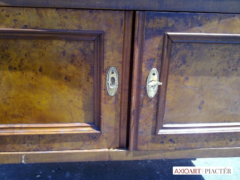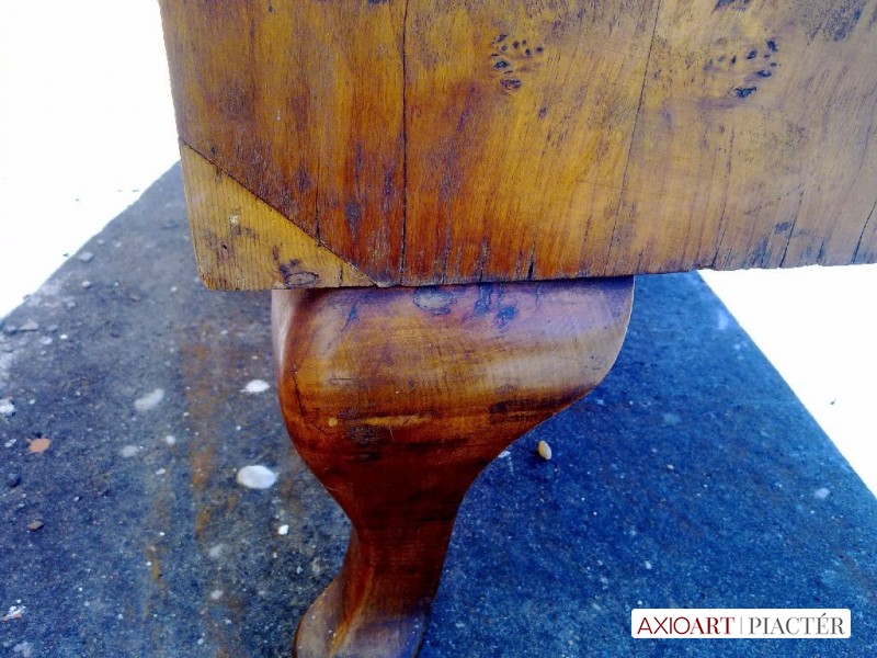 Nagyon szép darab. A gyökérfurnér szinte teljesen ép, a fronton hibátlan, oldalán hátul egy 5 cm-es darab hiányzik.