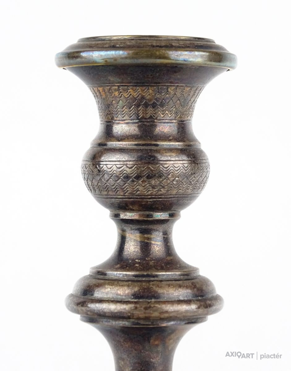 Antik díszes ezüstözött gyertyatartó 20 cm