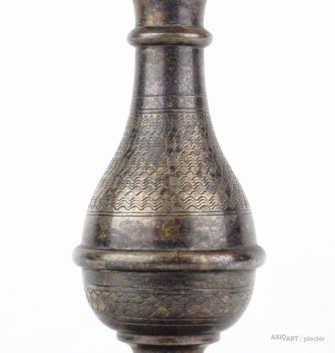 [0Y962/X083] Szép állapotú antik gyertyatartó. A felülete finoman díszített. Magasság: 20 cm Szélesség: 9.5 cm Súly: 0.195 kg