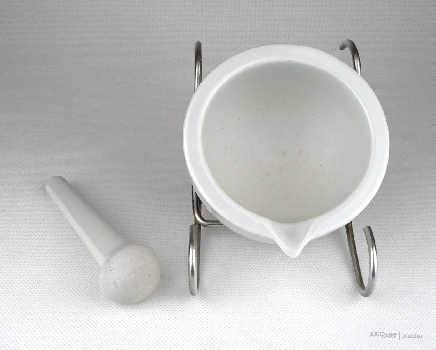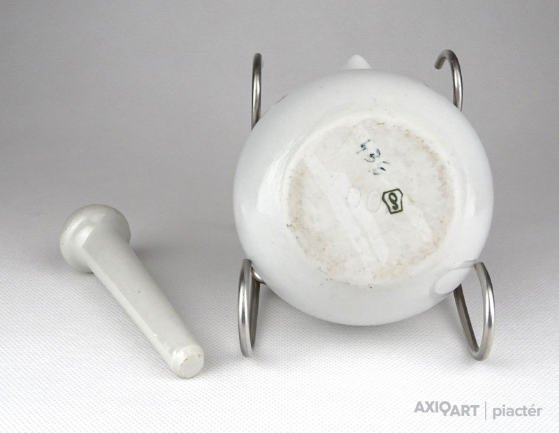 Antik, hibátlan állapotú, kisméretű, jelzett, fehér színű, porcelán mozsár törővel.