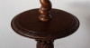 Szép állapotban megmaradt antik dúsan faragott állólámpa. Az egész test szépen faragott, csavart oszlopos, közepénél kör alakú lerakó polc található. Kettő darab nagy méretű (E27) izzó való bele. Működőképes állapotban van.