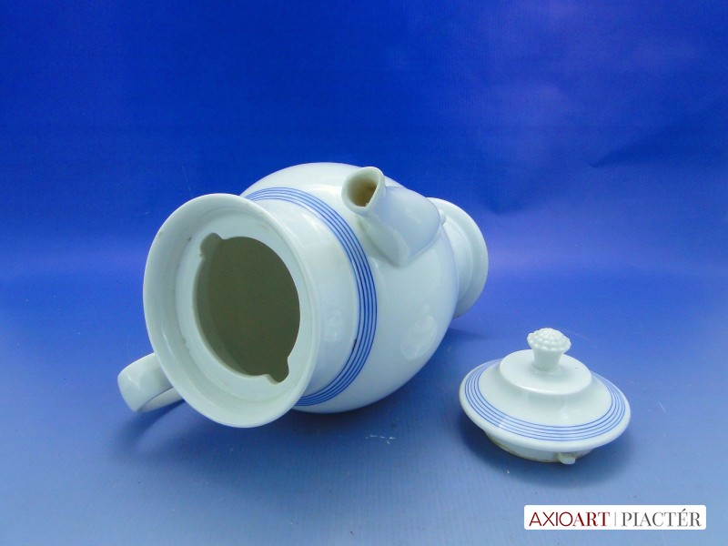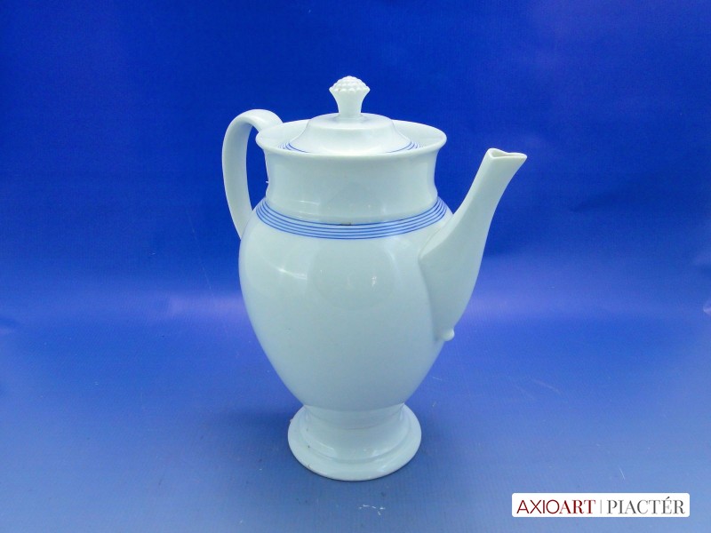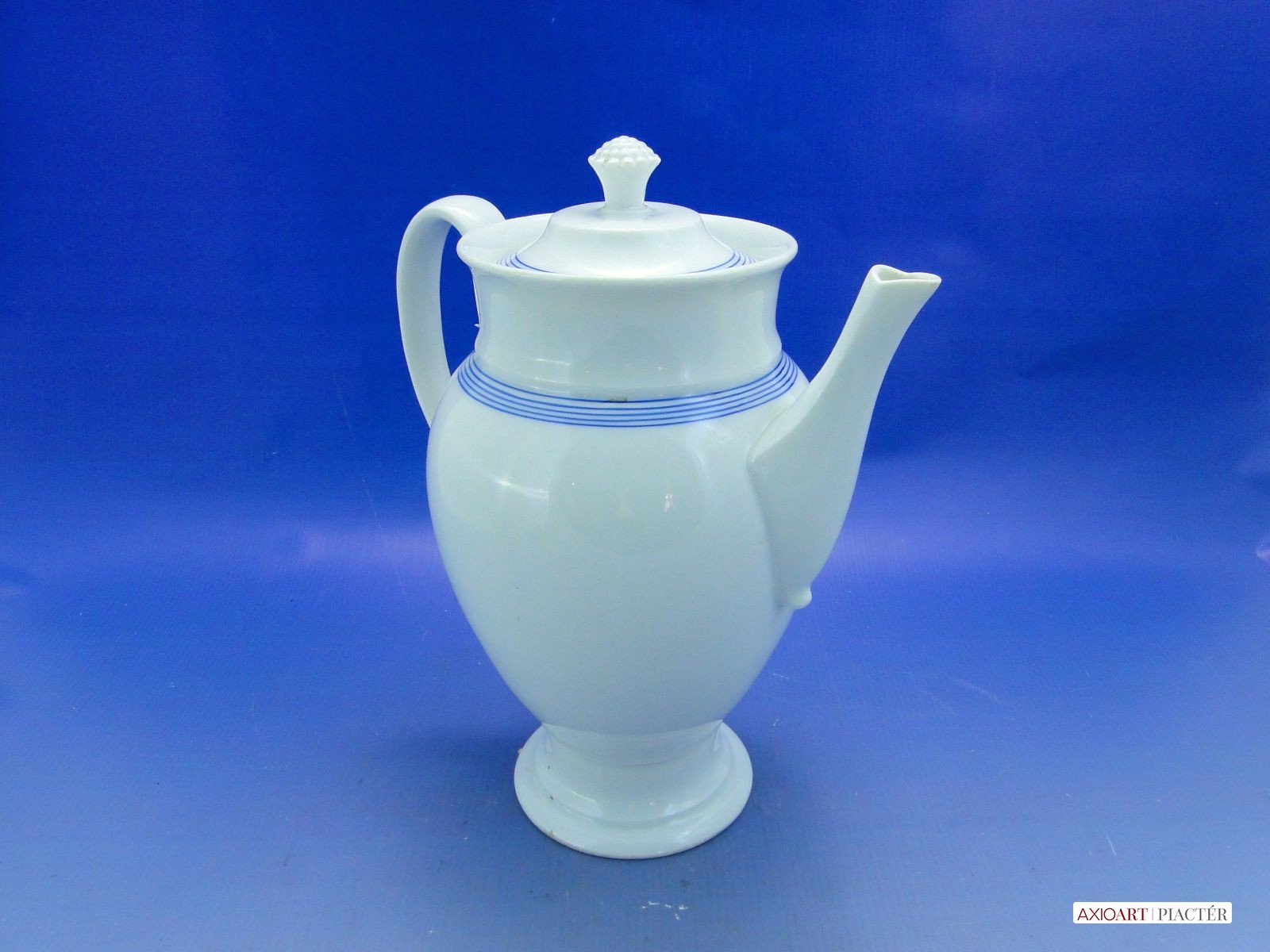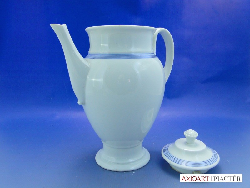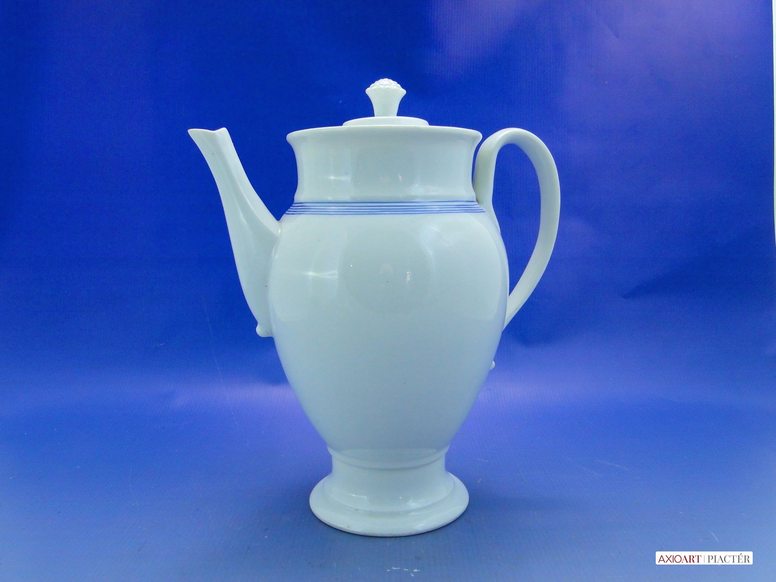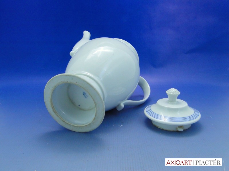 Gyönyörű, antik, hibátlan állapotú, diszkrét kék díszítésű jelzett porcelán teás kanna, tea kiöntő a 19. századból.