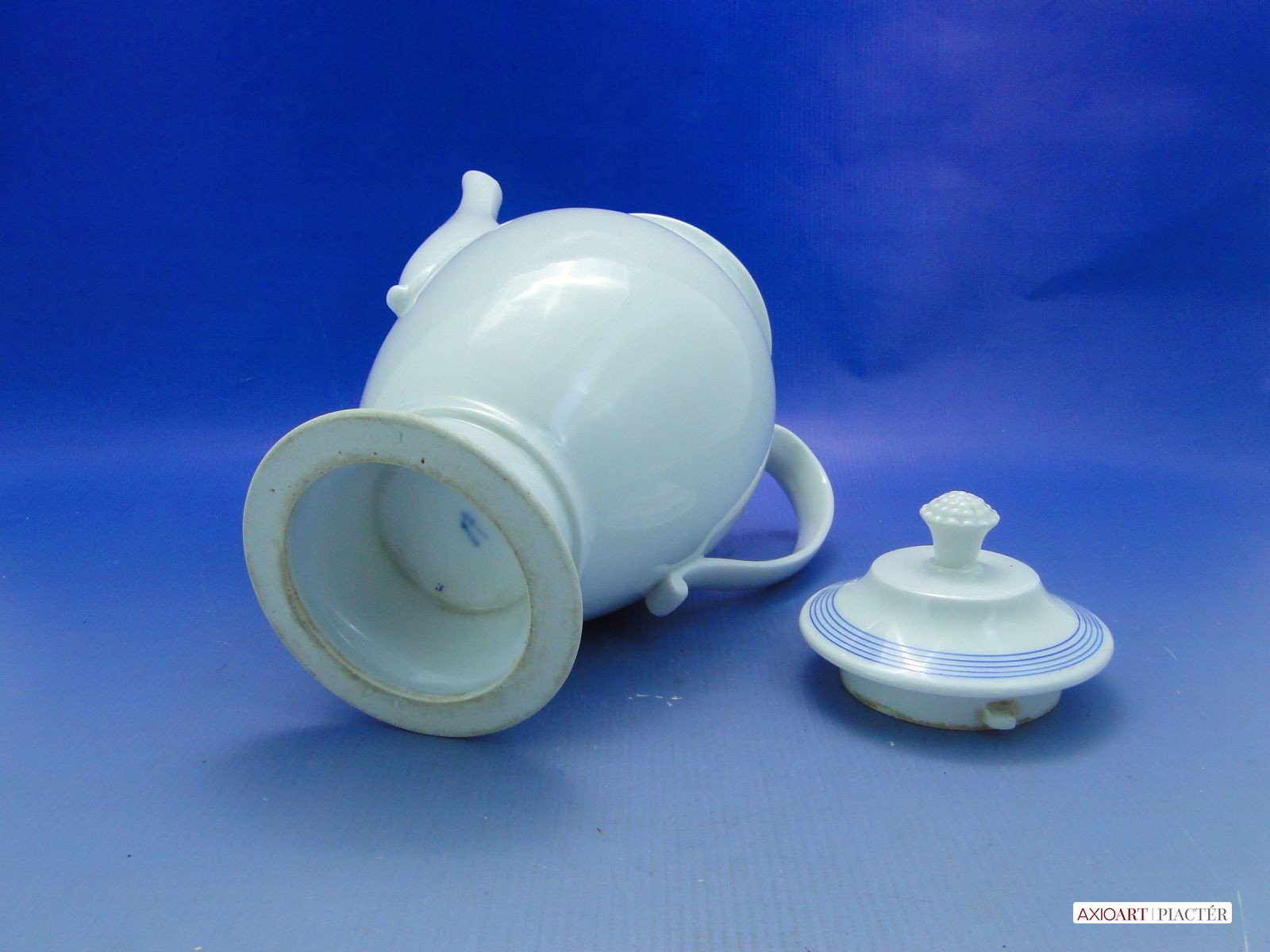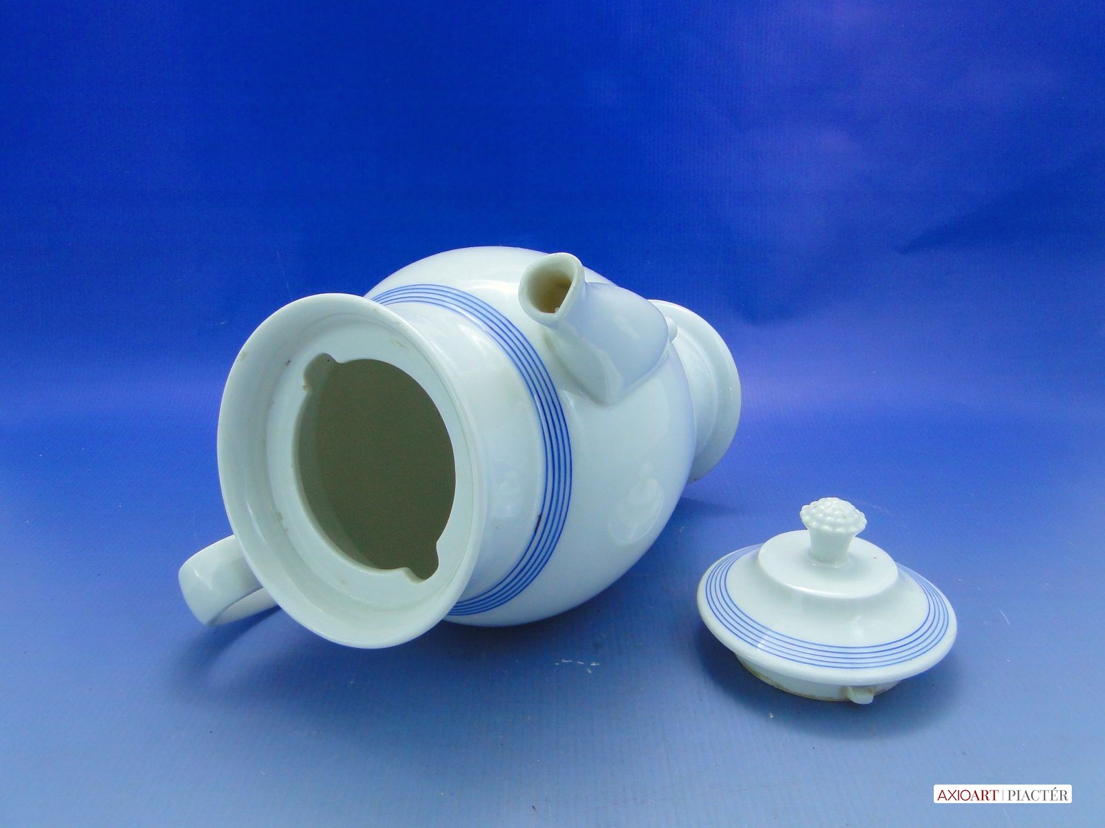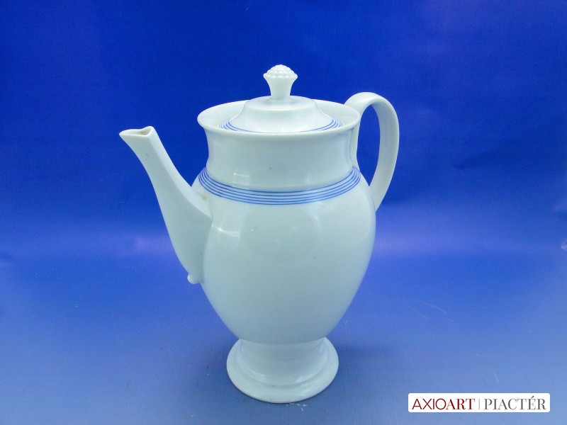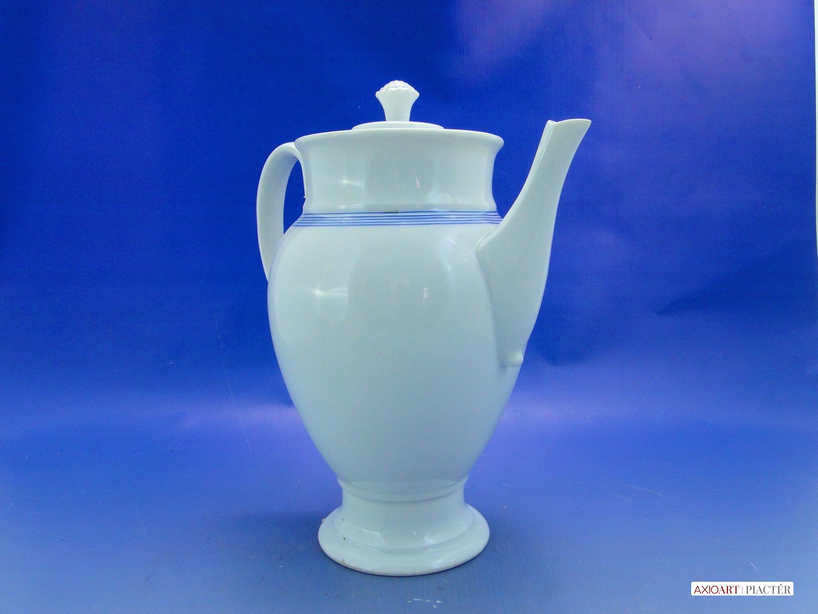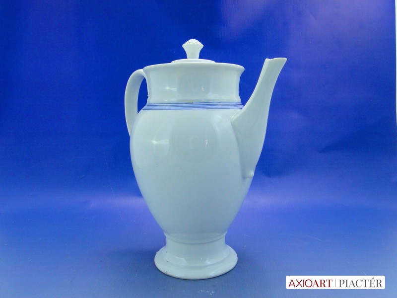 Gyönyörű, antik, hibátlan állapotú, diszkrét kék díszítésű jelzett porcelán teás kanna, tea kiöntő a 19. századból.