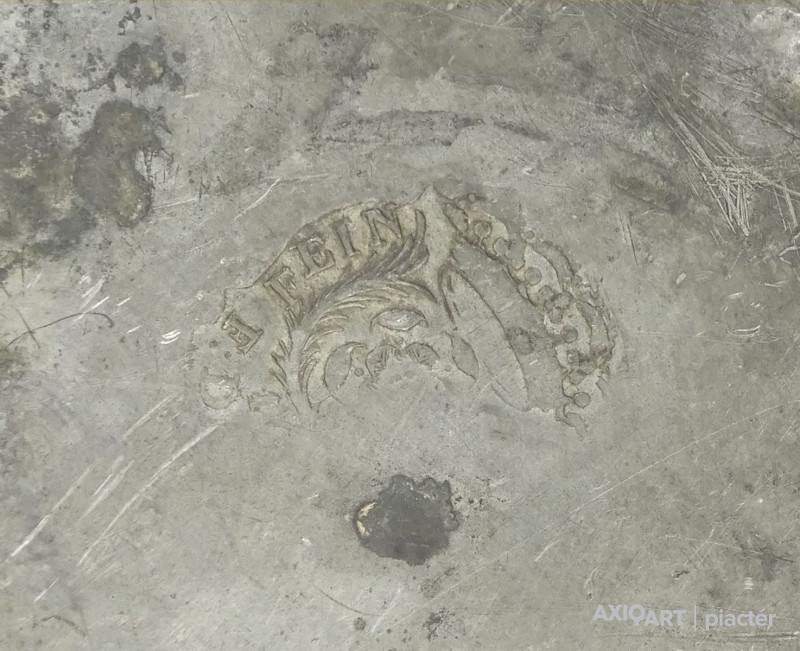 [0Z152/Z059] Antik, szép állapotú, fodros szélű jelzett óntányér, a 18. századból. Közepében címer: korona felett bagoly, címerpajzsban lovag páncélos karja, csillagokkal. Felirat: ELISCHER DE THURZÓBÁNYA Hátoldalán jelzések: FEIN F.D. Mellette régi BÁV aukciósház árcímke található, lásd fotó. Szélesség: 21.5 cm Súly: 0.435 kg Elischer Gyula (orvos, 1875–1929)[bevezető szerkesztése]    A Wikipédiából, a szabad enciklopédiából Ugrás a navigációhozUgrás a kereséshez Ez a szócikk az orvosról (röntgenológusról) szól. Hasonló címmel lásd még: Elischer Gyula (egyértelműsítő lap). Elischer Gyula Született 1875. február 28.[1] Budapest Elhunyt 1929. december 16.(54 évesen)[1] Budapest Állampolgársága magyar Szülei Elischer Gyula Foglalkozása orvos Halál oka rák Sírhely Fiumei Úti Sírkert A Wikimédia Commons tartalmaz Elischer Gyula témájú médiaállományokat. thurzóbányai Elischer Gyula (Budapest, 1875. február 28. – Budapest, 1929. december 16.) magyar röntgenológus, egyetemi tanár. Tartalomjegyzék 1Életpályája 2Családja 3Jegyzetek 4Források 5További információk  Életpályája[szerkesztés] 1893-ban érettségizett Budapesten a Fasori Lutheránus Gimnáziumban. Orvosi pályája elején – 1901–1909 között – gyakornok volt a budapesti kórbonctani tanszéken, majd a belgyógyászaton. Hamburgban Albers-Schönberg mellett ismerkedett meg a röntgenológiával. 1909–1912 között a II. sz. Belklinika tanársegéde és a röntgenlaboratórium vezetője volt. 1911-től a budapestibelklinika röntgen-laboratóriumának vezetője volt. 1912-ben magántanár lett a klinikai radiológiából. 1914–1918 között hadiorvos volt. 1917-ben az Orvoskari Röntgenintézet vezetője lett Alexander Béla halálát követően. 1922-től a röntgenológia nyilvános rendes tanára Debrecenben. 1924–1925 között, valamint 1927–1928 között az orvosi kar dékánja volt. Sugárzás okozta rákban hunyt el. Jelentősek a vese, a szív röntgenvizsgálatára, különösen pedig a gyomornyálkahártya-reliefre vonatkozó kutatásai. A debreceni egyetemen Csiky József, Szontágh Félix, Neuber Ede, Belák Sándor, Hüttl Tivadar, Huzella Tivadar, Ormós Jenő, Verzár Frigyes, Benedek László, Loessl János és Kulin László voltak kollégái.  Családja[szerkesztés] Szülei: Elischer Gyula (1846–1909) nőgyógyász és Thrór Vilma (1848–1923) voltak. Testvére, Elischer Vilmos (1877–1938) ügyvéd volt. 1904. december 17-én házasságot kötött Petschacher Ágotával. Egy fiuk született: Elischer Gyula (1918-?).[2] Sírja a Fiumei Úti Sírkertben található (35-1-97).   Forrás: wikipédia