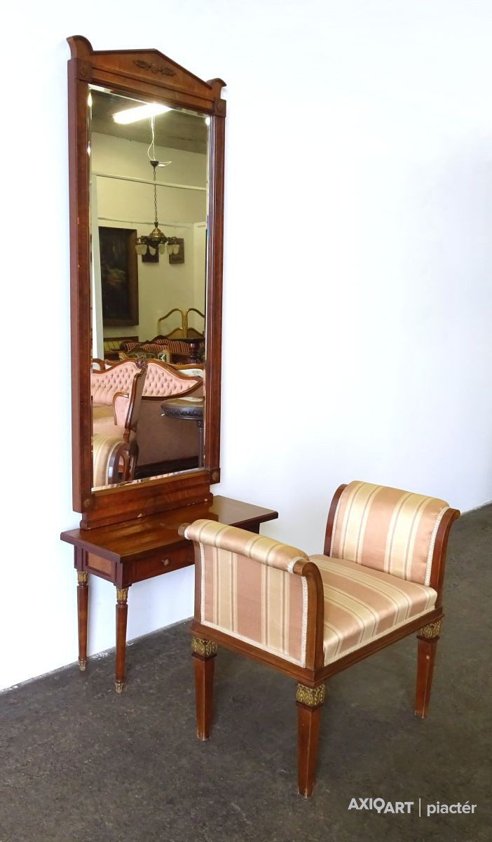 Antik empire pipere asztal fésülködő asztal ülőkével 210 cm