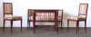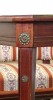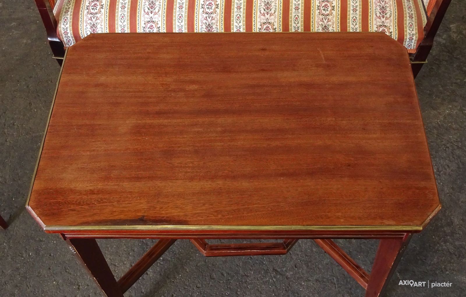 [0U607/BX-8] Antik poliszander empire ülőgarnitúra, szalongarnitúra. Szépen kidolgozott rézveretes, réz papucsos garnitúra. Nagyon szép állapotú stílusos kárpitozással. (A kárpitos munka anyaggal 300.000 ft feletti tétel) Részei: - 1 darab asztal (66 x 45 x 72 cm) - 2 darab támlás szék (86 x 41 x 42 cm) - 1 darab kanapé (66 x 111 x 53 cm)