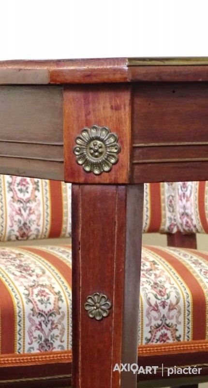 Antik poliszander empire ülőgarnitúra, szalongarnitúra. Szépen kidolgozott rézveretes, réz papucsos garnitúra. Nagyon szép állapotú stílusos kárpitozással. (A kárpitos munka anyaggal 300.000 ft feletti tétel)