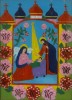 Színes üveg ikon, hibátlan állapotú, XIX. század vége, díszes floderozott keretben.
