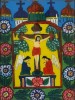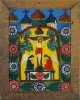 [0E979/016] Színes üveg ikon, hibátlan állapotú, XIX. század vége, díszes floderozott keretben. Válogatott, néprajzi gyűjteményből származó anyag. Magasság: 44.5 cm Szélesség: 35 cm Súly: 0.8 kg
