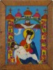 Színes üveg ikon, hibátlan állapotú, XIX. század vége, szép floderozott keretben.
