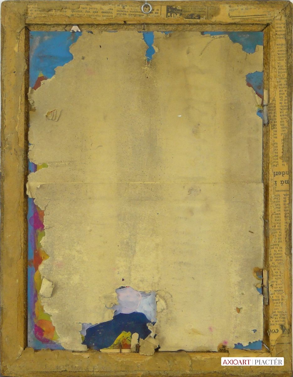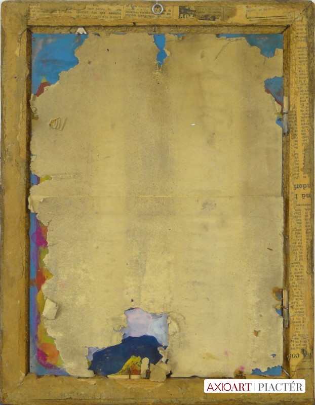 [1Y029/Z018] Olaj farost festmény, üveglap mögött, hibátlan képcsarnokos keretben. Hátoldalán Képcsarnok Vállalat papír címkéje: A művész neve: SCHÉNER MIHÁLY A kép címe: TÁJ Magasság: 66.5 cm Szélesség: 86 cm Súly: 6.54 kg Schéner Mihály festő, grafikus, szobrász, keramikus, bábtervező Medgyesegyháza, 1923-01-9 Elhalálozott: Budapest, 2009. május 11. Honlap: http://www.kormendigaleria.hu/kiadvany.html 1942-1947: Magyar Képzőművészeti Főiskola, tanára: Rudnay Gyula. 1978: Munkácsy-díj; 1984: érdemes művész; 1989: kiváló művész; 1995: Kossuth-díj. 1992-től a Magyar Művészeti Akadémia, 1993-tól a Széchenyi Irodalmi és Művészeti Akadémia tagja. 1956-ig tanított. 1982: Nagyatádi Faszobrász Alkotótelep, 1985: Nemzetközi Acélszobrász Alkotótelep, Dunaújváros. A stílusában felismerhető, mégis sokféle műtárgyat létrehozó ~ gazdag, állandóan alakuló életműve a folyton változó világban helyét kereső, az alkotói szabadságot megvalósító XX. századi képzőművész példázata lehetne. Magát expresszív-szürrealista alkotónak nevezi. Egyaránt dolgozik festékkel, textillel, fával, fémmel. Rajzol, szerkeszt, farag, épít, gyúr, varr és ragaszt, felhasználja a mézesbábok öntőformáit. Festő, rajzoló, textilszobor- és bábkészítő, fazekas, asztalos, esztergályos. Háromlépcsős folyamatban gondolkozik: rajzban tervez, majd fest, szobrot készít, “formába önt”, mindig a végső plasztikai megoldást keresi. Ami állandó és mégis játékosan változékony megjelenésű Schéner művészetében, az a gyermekkori emlékek által meghatározott népi mesterségek iránti tiszteletet kifejező motívumkincs, a tárgyi folklór formakészlete, amely már-már kézjegyként ismétlődik munkáin. Mitologikussá nőtt képzelete új lényeket teremt, pl: a Pigulát, amely disznótestű, emberfejű teremtmény. Schéner festményein a szürrealista motívumokat konstruktív szerkezetbe rendezi, a geometriát és az organikus természeti motívumokat egyaránt beépíti műveibe. A népi, népművészeti formakincsből merített lovas huszárok, betyárok, szegénylegények cifra szűr mentéje, piros csákója, fekete csizmája, az önálló életet élő zsinórdíszek és mézeskalács bábok, a kiskocsik a gyermekkori vásárok, búcsúk színes forgatagába vezet. A primér motívumokat aztán felváltják a vastagon felhordott felületbe karcolt jelek, vonalhálózatok, amelyek a játszó gyermek homokba rajzolt ábráit, a pásztorember fába vésett üzeneteit, az ősember barlang falába rótt mágikus jeleneteit idézik meg. A művész pillanatnyi érdeklődésének megfelelően a színek búvópatakként tűnnek el és jelennek meg ismét. A 60-as években leginkább a formákkal való játék érdekelte, a festmények felülete egyre gazdagodott: a táblaképek felületén applikációk jelentek meg, vagy lemállasztott rétegek hagyták maguk után hiányukat, motívumok nélküli ősformák, archetipikus képzetek bukkantak fel művészetében. A véletlenszerűnek látszó rétegekkel való játék azonban tudatos komponálás eredménye, amely később nyilvánvaló ritmusnak és formai szerkesztettségnek adja át a helyét, mint a Törvénytáblák c. sorozaton. A különböző művészi kifejezési formák egymásra termékenyítő hatással vannak, át- meg áthatják egymást. Textilszobrai, amelyekkel új műfajt teremtett, ugyanazzal az automatikus, expresszív-szürrealista módszerrel készülnek, mint festményei. A hagyományosan a népművészetben alkalmazott anyag, a filc lehetőséget ad a népi formakincs felelevenítésére, amely azonban a művész különös szürrealista átiratában jelenik meg. A szívekkel kivarrt, zsinórdíszes Posztókotlós c. művén mézesbábok lógnak, hátán huszárok lovagolnak. Egész sor textilből készült kéz-plasztikát alkot, amelyeket az ujjakra rávarrt díszekkel öltöztet, személyesít meg. A színes-különös világból aztán ~ újra puritán képi és formai rendbe juttatja el a nézőt, majd nemsokára tépett, gyűrt, vágott, csorgatott, repedezni hagyott szenvedélyesen vonagló képi felületeket hagy hátra. Schéner készített apró gyermekjátékokat, térstruktúra-tereket, mászókákat is. A magyar népi formák mellett szürreális játékaiban gyakran alkalmaz görög mitológiai alakokat, “elkentaurosodott” lovakat, Gorgó-fejeket, sellőket, hárpiákat, Pán-ábrázolásokat. Schéner nemcsak saját művészetéről publikál, hanem művésztársairól is számos írása jelenik meg, elsősorban az Új Auróra c. folyóiratban, amelynek egy ideig főmunkatársa volt. Irodalom kiállítása, Magyar Építőművészet, 1962/4. Húsz év után, Művészet, 1965/4. BOZÓKY M.: ~, Tiszatáj, 1968/5. PERNECZKY G.: Nincs uborkaszezon, Élet és Irodalom, 1969. augusztus 8. BARÁNSZKY-JÓB L.: ~, Művészet, 1969/9. LÁSZLÓ GY.: ~ kaposvári kiállítása, Jelenkor, 1969/4. MAJOR M.: Pásztorok, betyárok, huszárok - kezek, Tükör, 1970. szeptember 15. FRANK J.: Bemutatjuk ~t, Élet és Irodalom, 1972. május 6. ról kiállítása ürügyén, Képzőművészeti Almanach, Budapest, 1972 Sötétkék kokasok, Élet és Irodalom, 1973. szeptember 9. MAJOR M.: ~ játékai, Élet és Irodalom, 1974. július 27. BARTA J.: Egy különös művész, Alföld, 1974/6. VADAS J.: Szárnykészítők, Élet és Irodalom, 1975. október 4. JUHÁSZ F.: A halál ellen játszani, Élet és Irodalom, 1975. május 17. PAP G.: Kincsek és műkincsek, Művészet, 1975/6. P. SZŰCS J.: Az utak kettéválnak, Művészet, 1978/3. Békési művészet, Művészet, 1978/7. SZAMOSI F.: ~ [kismonográfia], Budapest, 1978 VADAS J.: Játék a játékkal, Élet és Irodalom, 1979. augusztus 18. NÉMETH L.: ~ műveiről, Művészet, 1979/4. MIKLÓS P.: Mit akar ez a múzeum?, Művésze
