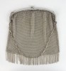 [0T069/X329] Régi, különleges, rengeteg munkaórával készült, apró szemekből fűzött lánctáska, női színházi táska, csattal, lánccal. Magasság: 17 cm Szélesség: 17 cm Súly: 0.22 kg