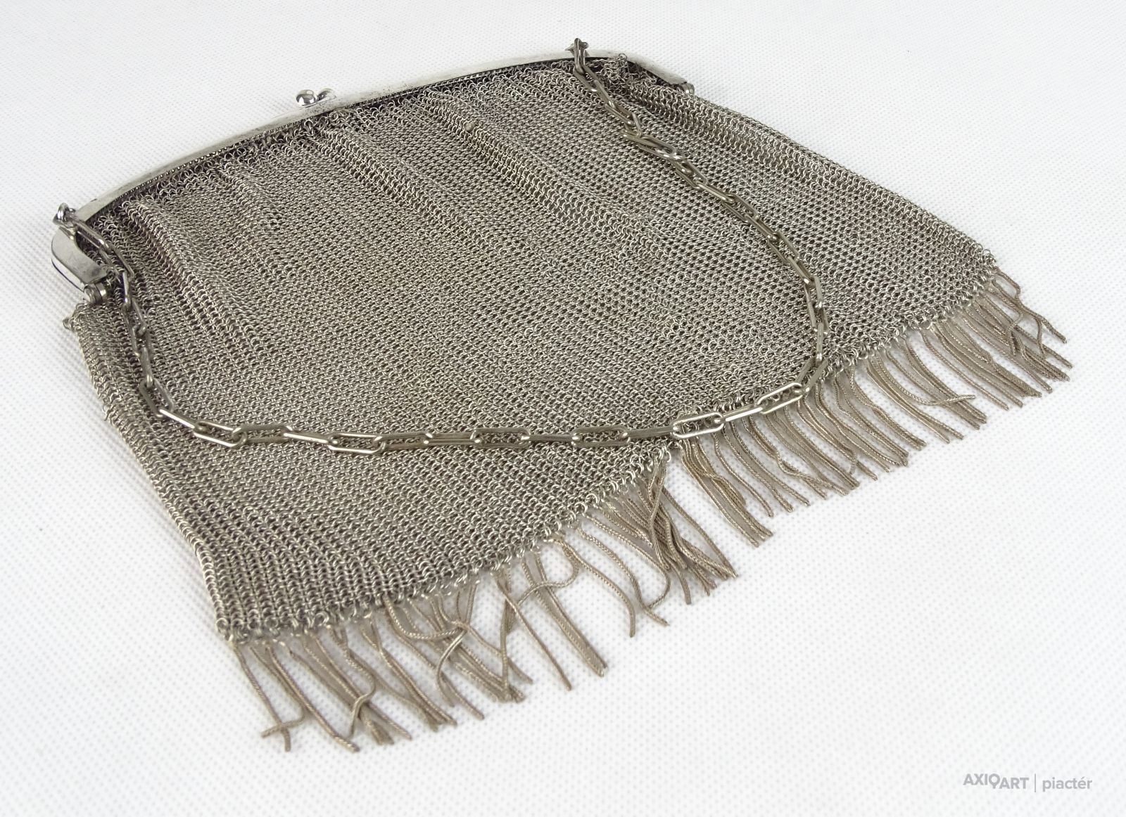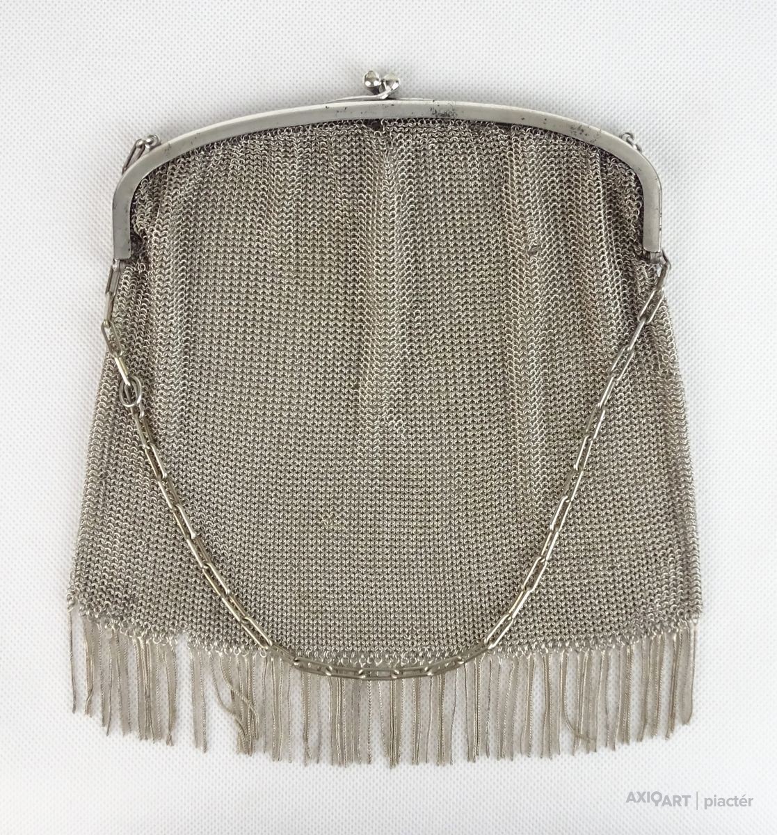 Régi, különleges, rengeteg munkaórával készült, apró szemekből fűzött lánctáska, női színházi táska, csattal, lánccal.