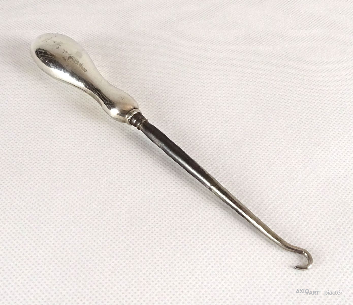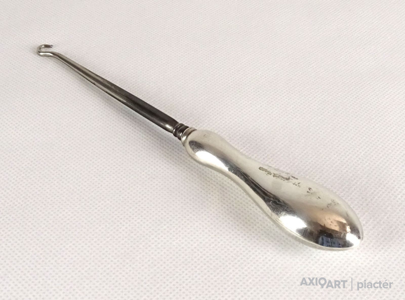 Antik ezüstözött cipőgomboló eszköz a XIX. századból.