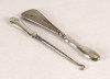 De miért voltak olyan aprócska eszközök is, amikkel biztosan nem lehetett cipőt gombolni? A sokgombos világban, a ruhák és a hosszú kesztyűk is rengeteg gombbal záródtak. Nem volt egyszerű begombolni a merev, keményített férfi inggallérokat és mandzsettákat sem. Az utóbbiakhoz főként hurok végződésű gallérgombolókat alkalmaztak. Ez a helyes példány például achát nyéllel készült.
