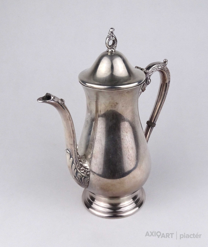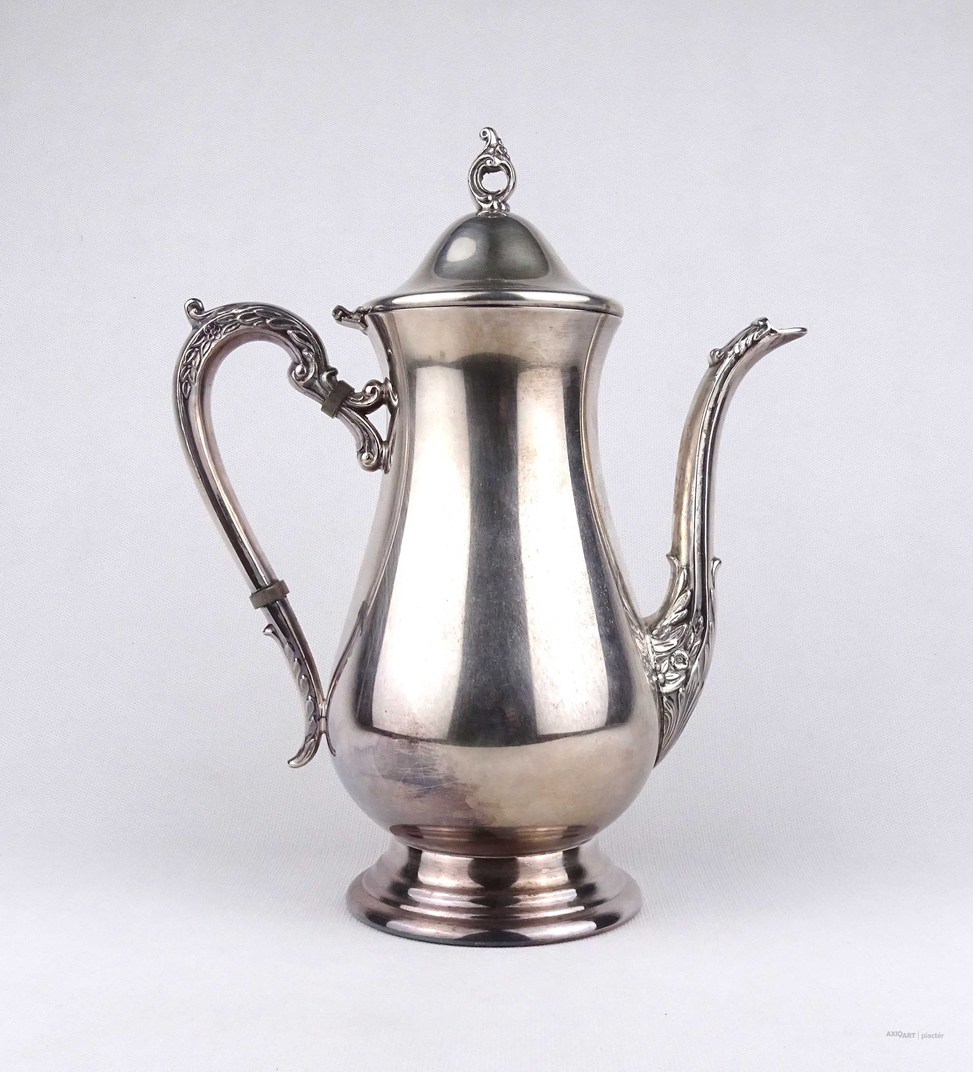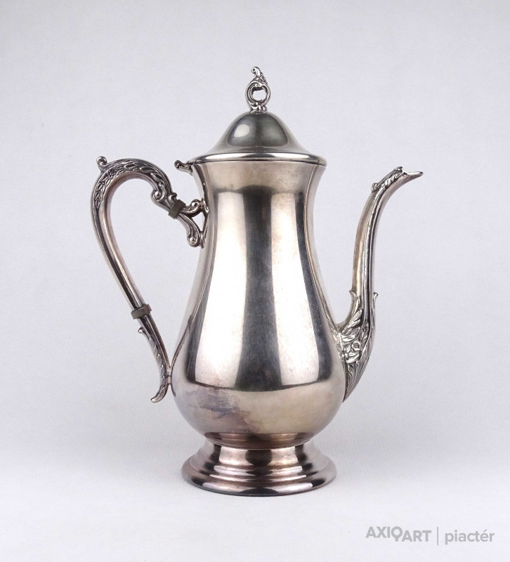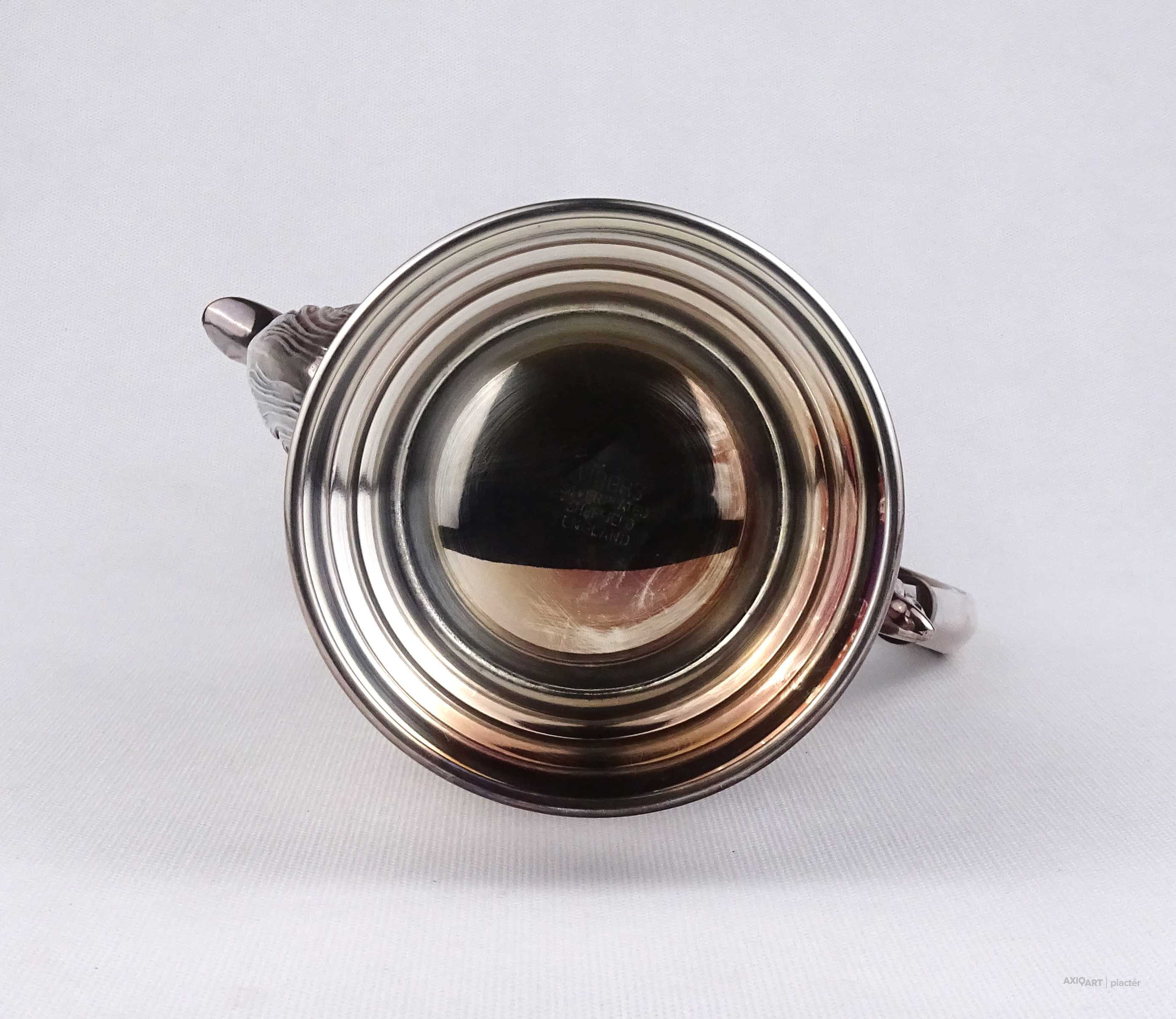 Antik, gyönyörű állapotú, vastagon ezüstözött, jelzett angol Viners fém teáskanna.