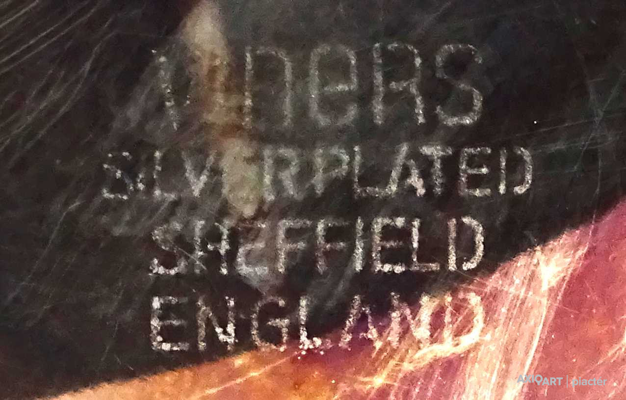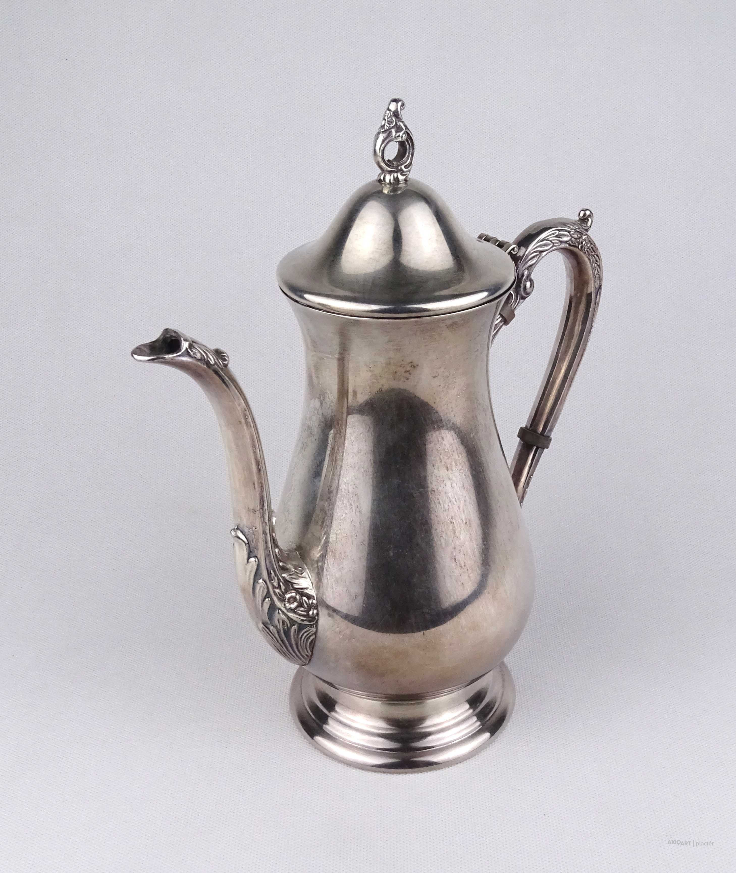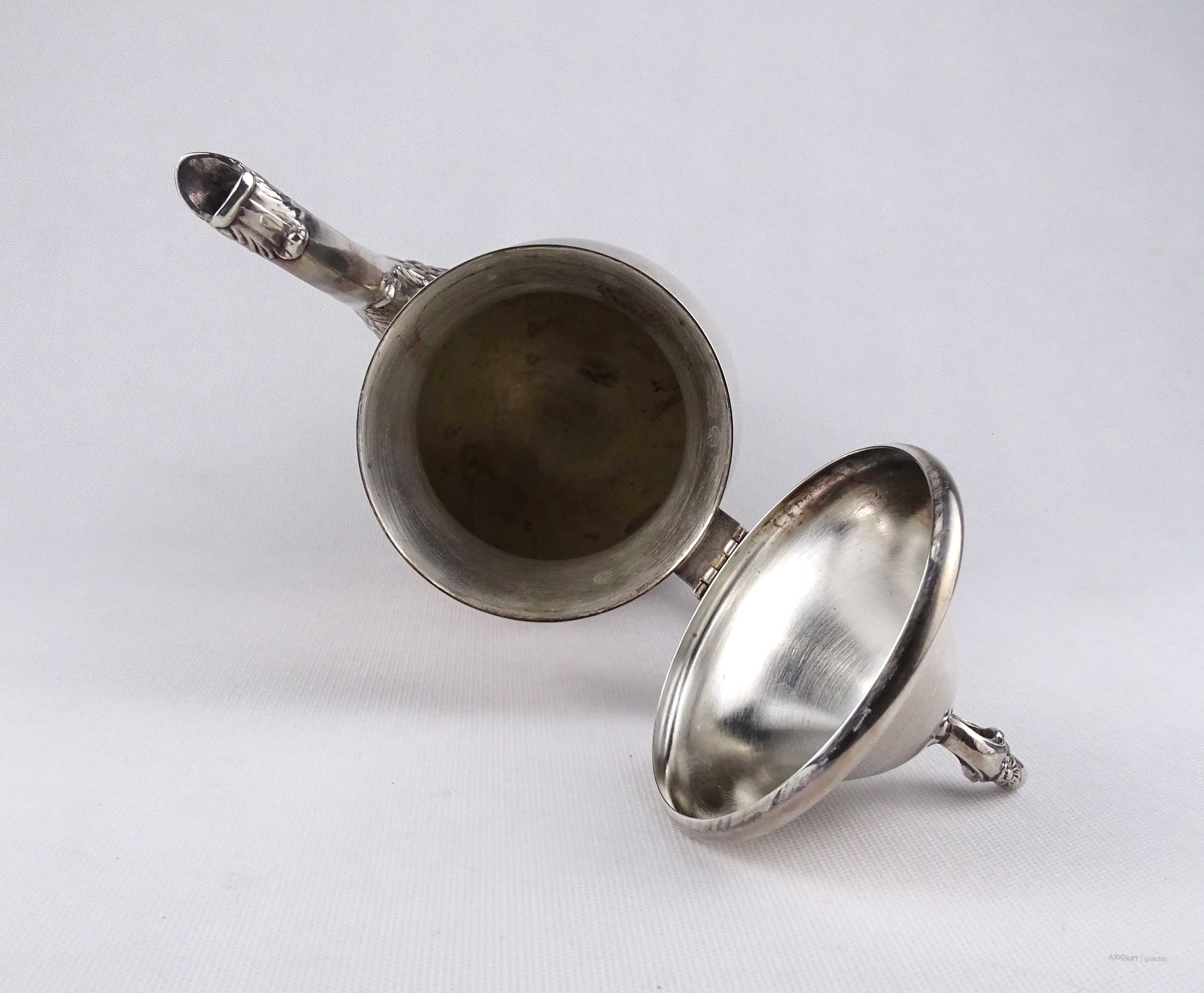 Antik, gyönyörű állapotú, vastagon ezüstözött, jelzett angol Viners fém teáskanna.