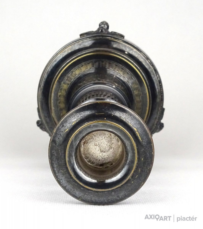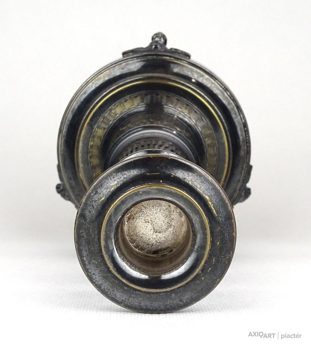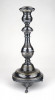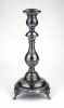 [1D516/X083] Antik jelzett, három lábon álló, patinás, ezüstözött gyertyatartó. Oldalán jelzés: W&G Magasság: 23 cm Súly: 0.23 kg