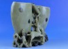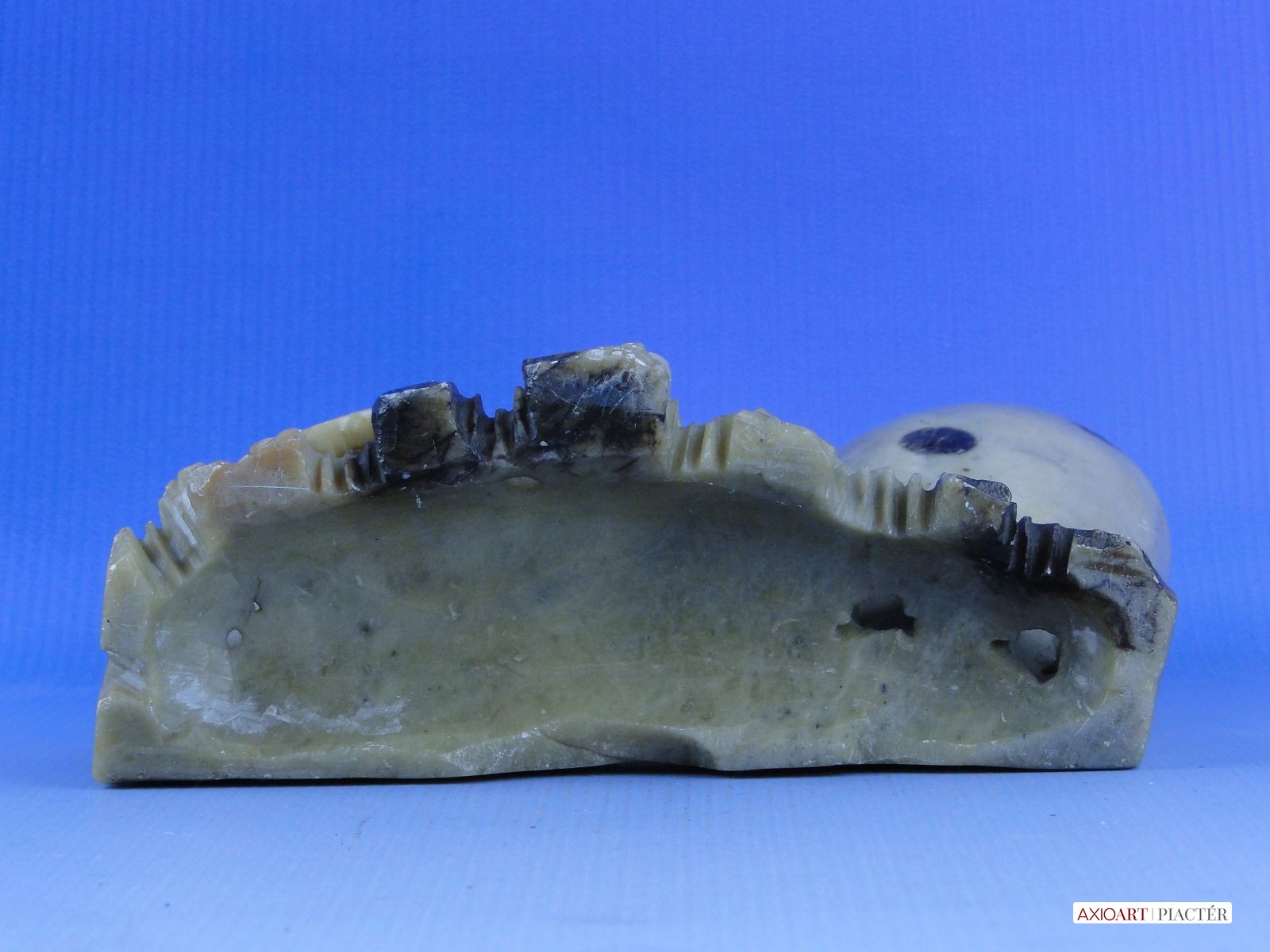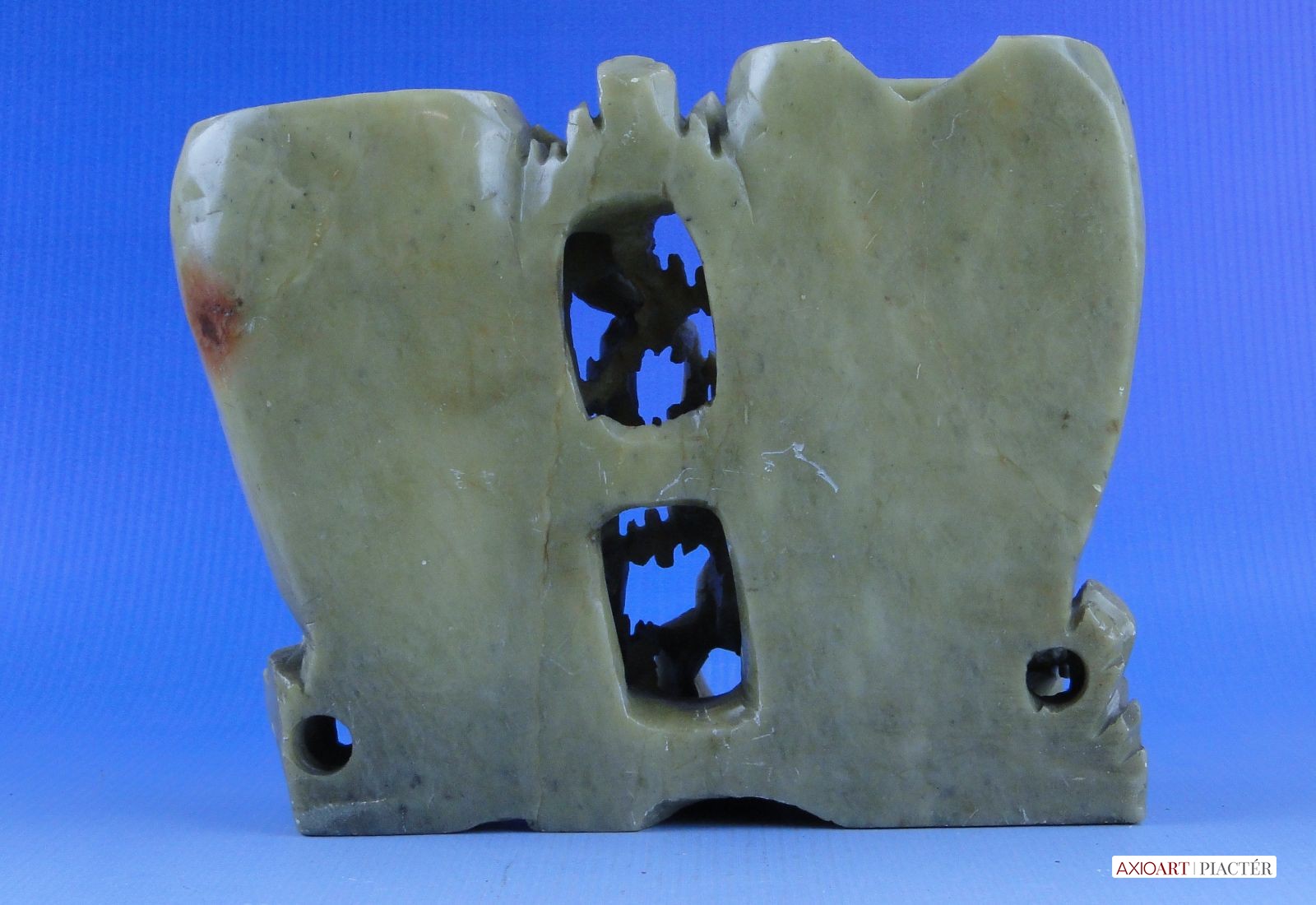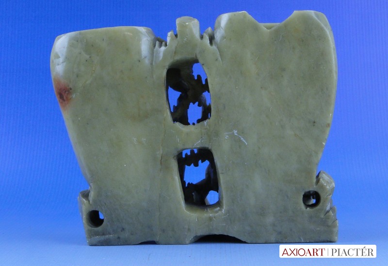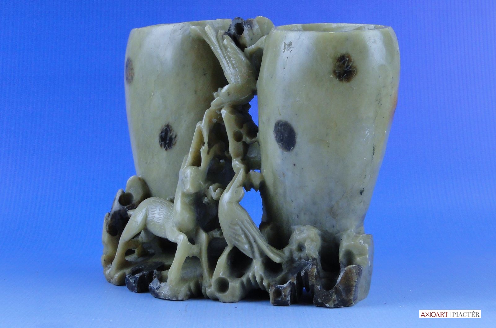 Cca. 100 éves korú, dúsan faragott antik zsírkő kettes virágtartó váza dísztárgy.