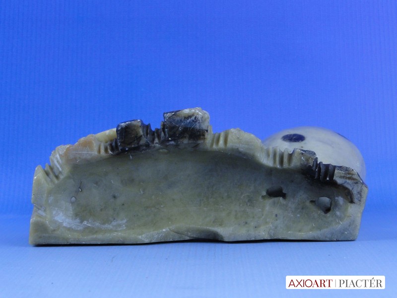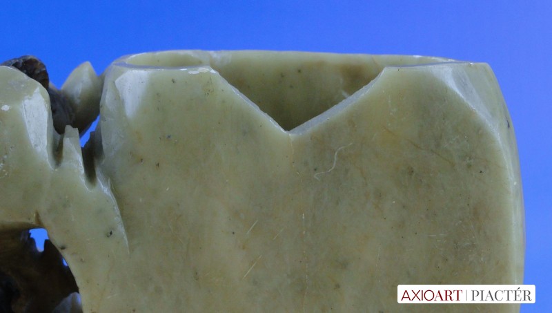 Rendkívüli, extra, gyűjteménybe való állatos zsírkő faragvány. Szarvas és több madár, paradicsommadár látható rajta.