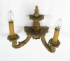 [0T579/059] Antik, dupla karos papírmasé gyertyákban végződő kisméretű foglalattal rendelkező, falra akasztással rendelkező fali kar. Aranyozása kopottas. Magasság: 32 cm Szélesség: 29 cm Súly: 0.48 kg