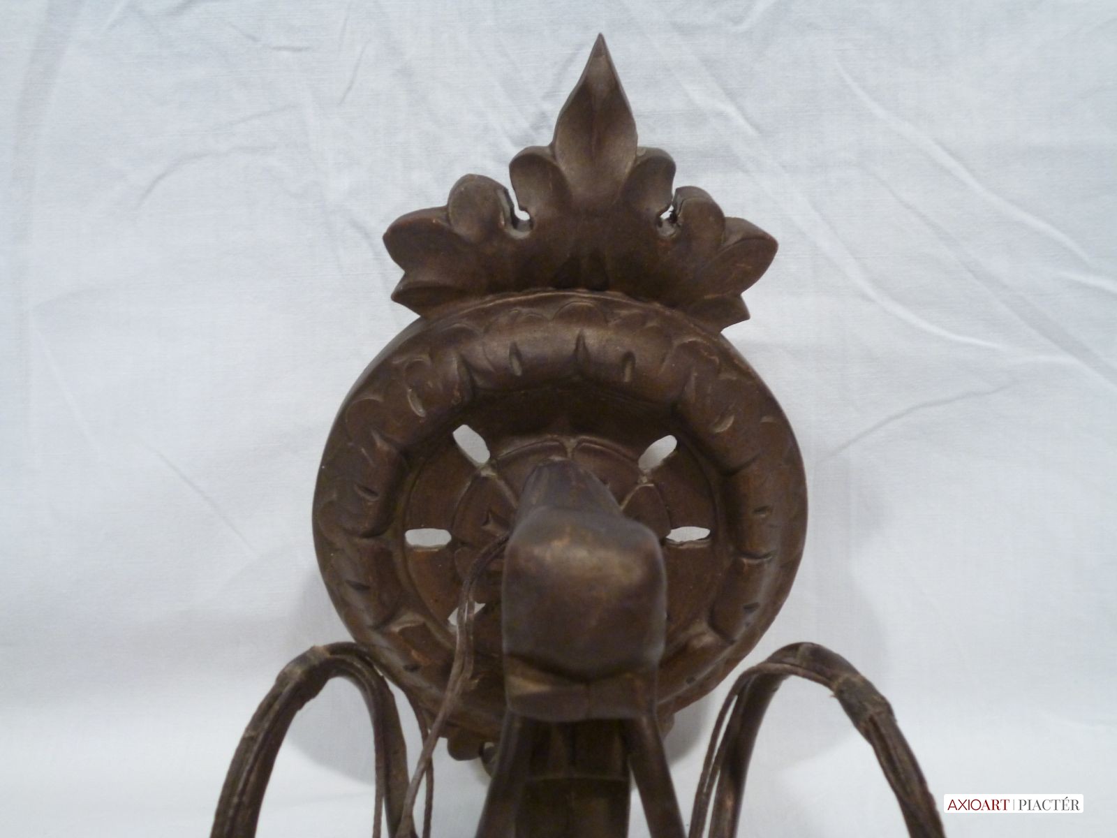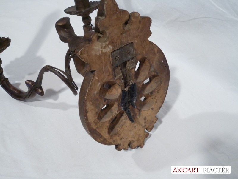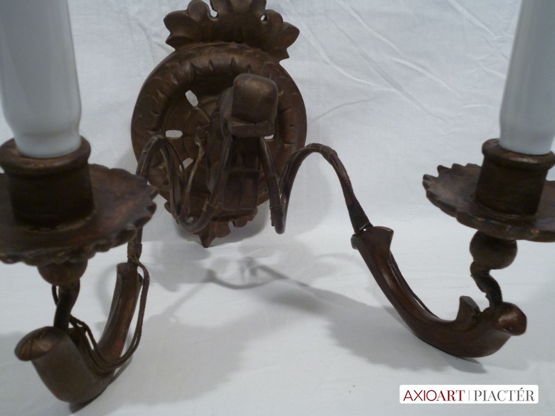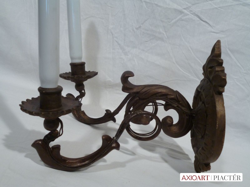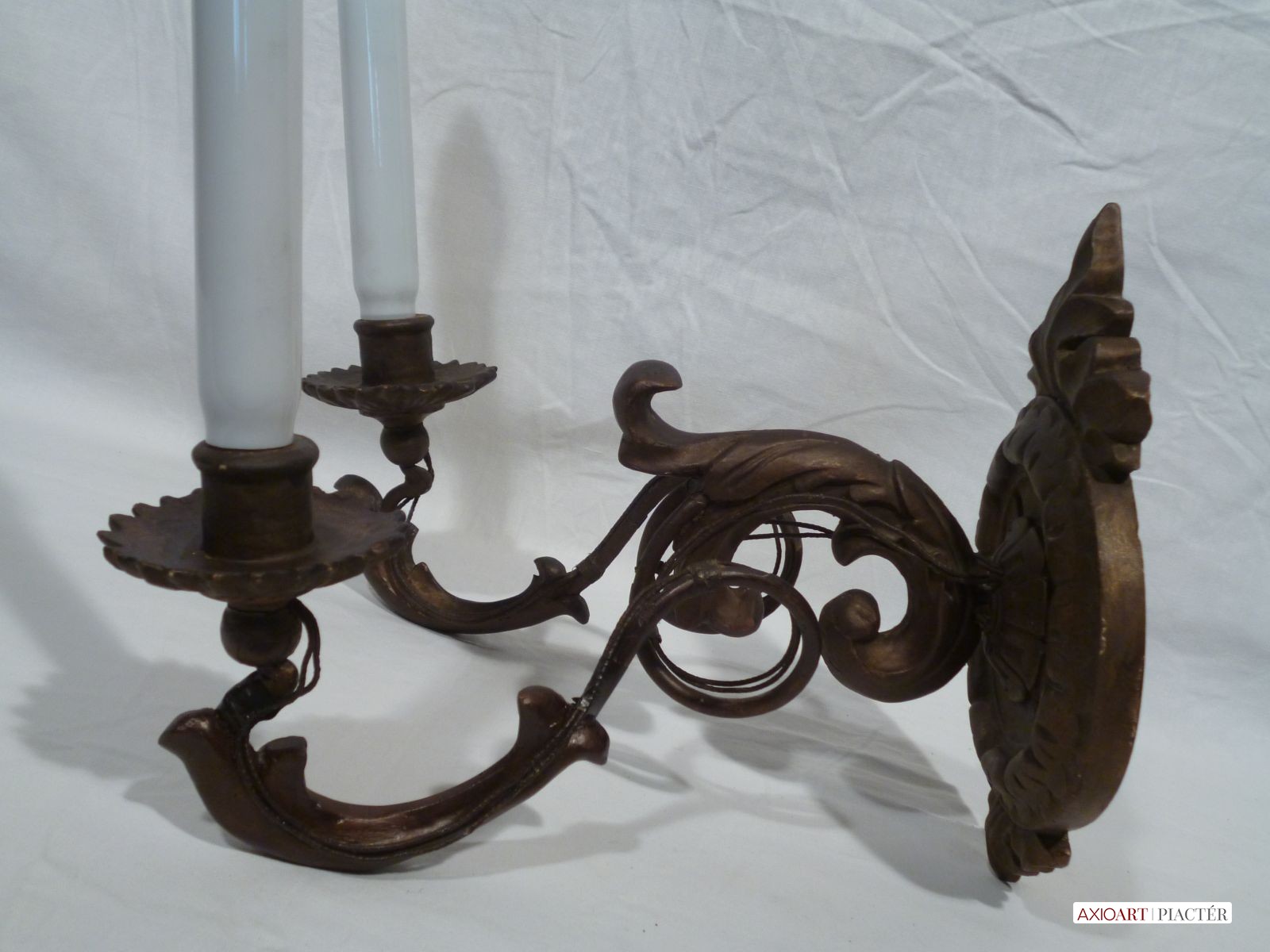 Antik bevezetékelt faragott fa, 2 égős falikar.