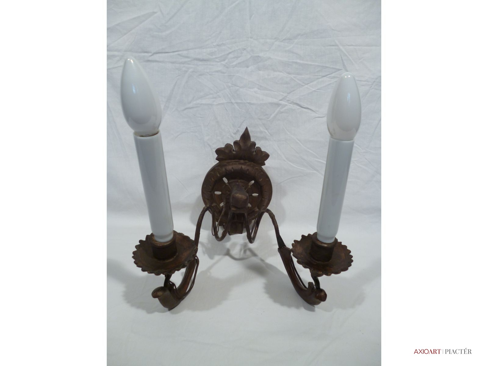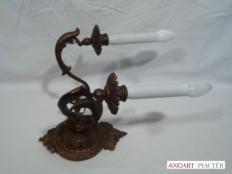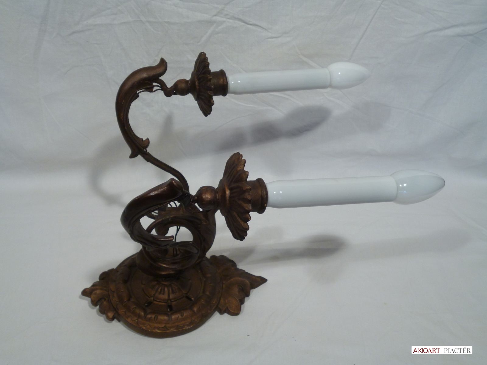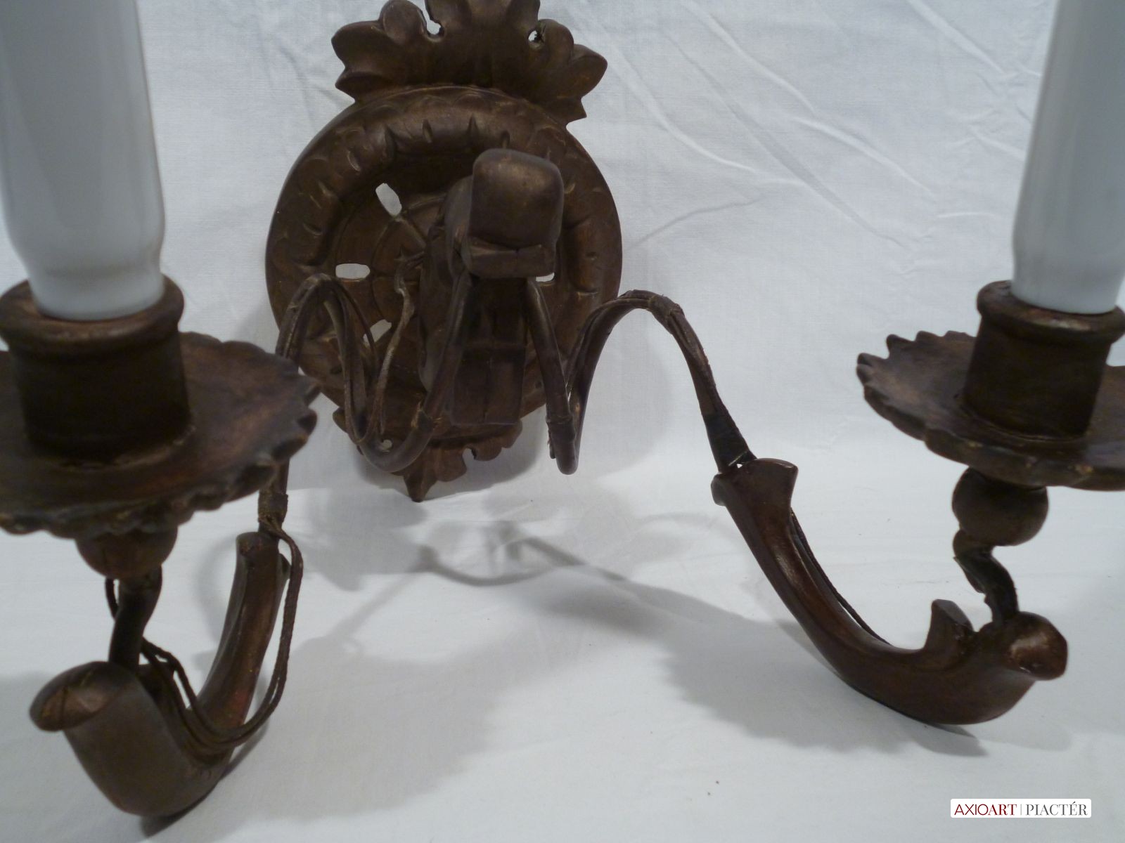 Antik bevezetékelt faragott fa, 2 égős falikar.