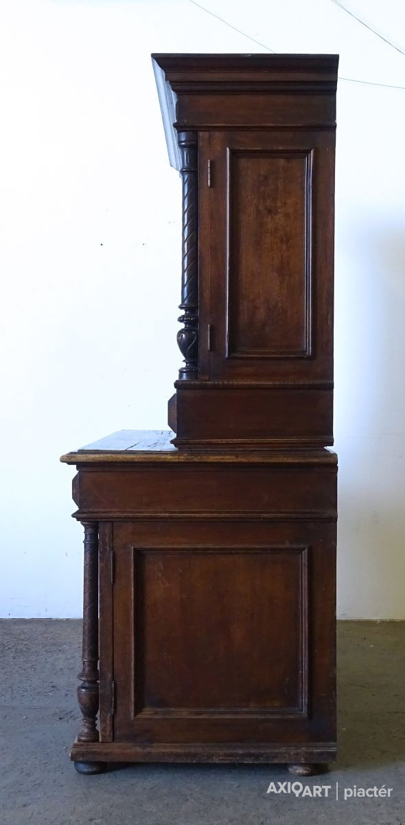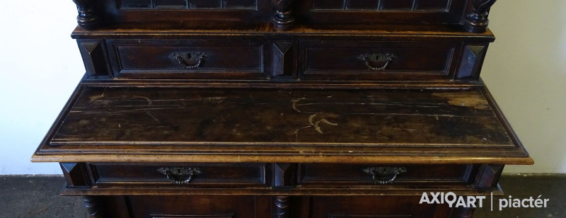 Antik faragott flamand stílusú oszlopos nagyméretű tálalószekrény 190 cm
