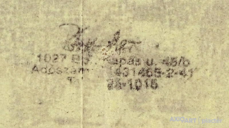 [1Y034/Z018] Olaj vászon festmény, üveglap mögött, szép állapotú képcsarnokos keretben. Akasztási lehetőséggel rendelkezik. Jelezve jobbra lent: Balog A. Hátoldalán a kereten Képcsarnok Vállalat címke töredék látható, rajta felirat: A művészeti alkotás címe: LEÁNY Magasság: 86 cm Szélesség: 66 cm Súly: 5.37 kg Balogh András (képei szignóján az 1960-as évektől Balog) (Budapest, 1919. március 14. — Budapest, 1992. március 18.) festőművész, kerttervező, művészeti szakíró, c. egyetemi tanár. Életpályája és munkássága Apai ágon a géresi Baloghok Szatmár megyéből a dél-erdélyi Alsó-Fehér megyébe származtak, anyai fölmenői a Székelyföldön: Csíkban, ill. Háromszéken éltek. Szülei az 1900-as évek elején költöztek Budapestre. A Képzőművészeti Főiskolán 1937-ben kezdte meg tanulmányait Burghardt Rezső tanítványaként. 1950-töl 1980-ig a Kertészeti Főiskolán (később Kertészeti Egyetem) tanított a kerttervezési tanszéken művészettörténetet, szabadkézi rajzot, ábrázoló geometriát és kertesztétikát. Az Iparművészeti Főiskolán óraadóként kertesztétikát adott elő. 1971-ben részt vett a firenzei Palazzo Strozziban rendezett biennálén, ahol aranyéremmel tüntették ki. Rendszeres önálló és csoportos kiállítások sora következett ezután nemcsak Magyarországon, hanem Olaszország és Németország számtalan városában, kiállított Finnországban, Kanadában is. Egyéni kiállításai gyakran katalógusokkal jelentek meg.[1][2][3] Nyaranként Tihanyban vagy Zsennyén alkotott. Festészetét poétikus realizmus jellemzi, dekoratív elrendezésű kompozíciói és lágy színvilága bensőséges hangulatot, szépséget, harmóniát árasztanak. (Lány egyszarvúval; Alvó, Emberpár és táj, stb.) Nagyon sok tájképet és portrét festett, történelmi személyiségekről is, 1978 és 1989 közt megfestette Mindszenty József bíboros portréját. Képei a Magyar Nemzeti Galériában, vidéki múzeumainkban, olasz, német, finn, észak-amerikai, kanadai, ausztráliai gyűjteményekben vannak.