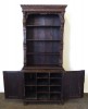 [0O349/UZ-K] Antik, szép állapotú, hatalmas, két részből álló rendkívül dúsan faragott szekrény. Az oldalak is teli vésett, virágindás díszítésűek. Nagy ritka bútor. Faragványokkal gazdagon díszített, faunfejes, polcos, kétajtós szekrény. 1830-60 körüli darab. Magasság: 238 cm Szélesség: 110 cm