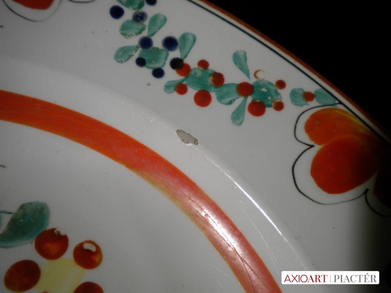 Felületén egy apró máz lepattanás látható, enyhén karcos, nem jelentős.
