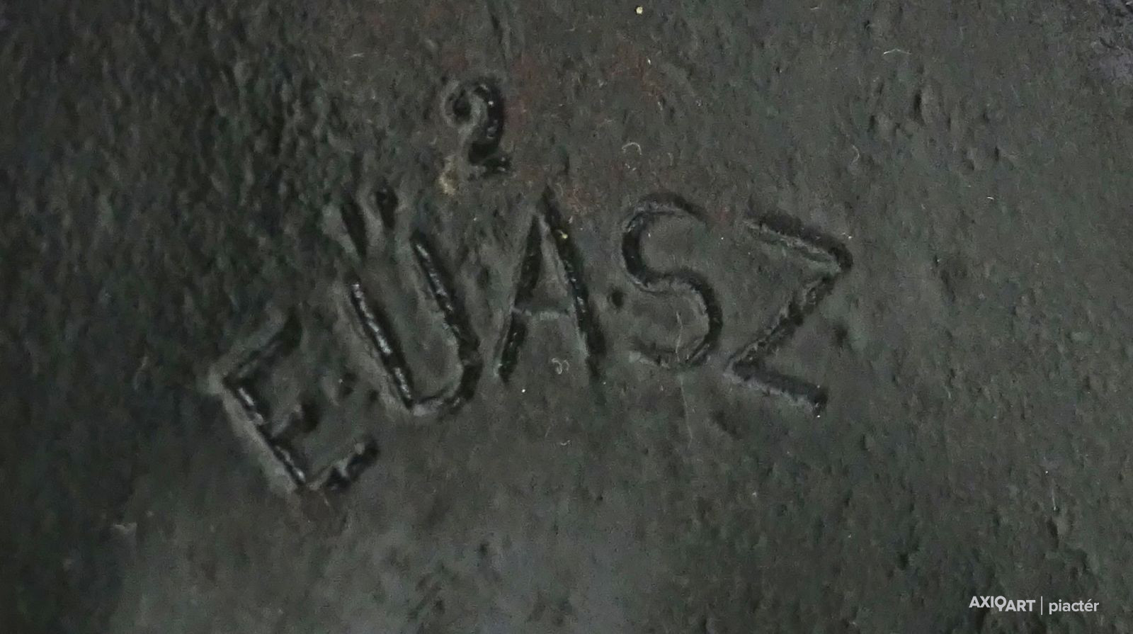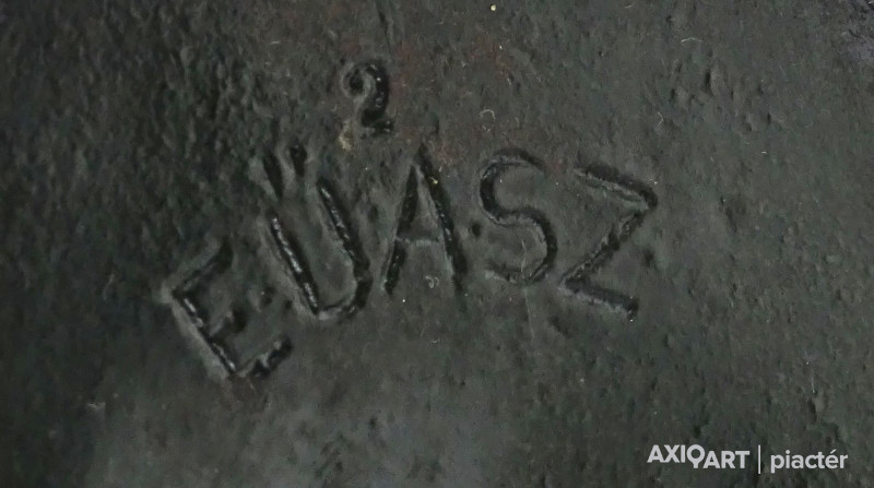 [1Y034/Z018] Olaj vászon festmény, üveglap mögött, szép állapotú képcsarnokos keretben. Akasztási lehetőséggel rendelkezik. Jelezve jobbra lent: Balog A. Hátoldalán a kereten Képcsarnok Vállalat címke töredék látható, rajta felirat: A művészeti alkotás címe: LEÁNY Magasság: 86 cm Szélesség: 66 cm Súly: 5.37 kg Balogh András (képei szignóján az 1960-as évektől Balog) (Budapest, 1919. március 14. — Budapest, 1992. március 18.) festőművész, kerttervező, művészeti szakíró, c. egyetemi tanár. Életpályája és munkássága Apai ágon a géresi Baloghok Szatmár megyéből a dél-erdélyi Alsó-Fehér megyébe származtak, anyai fölmenői a Székelyföldön: Csíkban, ill. Háromszéken éltek. Szülei az 1900-as évek elején költöztek Budapestre. A Képzőművészeti Főiskolán 1937-ben kezdte meg tanulmányait Burghardt Rezső tanítványaként. 1950-töl 1980-ig a Kertészeti Főiskolán (később Kertészeti Egyetem) tanított a kerttervezési tanszéken művészettörténetet, szabadkézi rajzot, ábrázoló geometriát és kertesztétikát. Az Iparművészeti Főiskolán óraadóként kertesztétikát adott elő. 1971-ben részt vett a firenzei Palazzo Strozziban rendezett biennálén, ahol aranyéremmel tüntették ki. Rendszeres önálló és csoportos kiállítások sora következett ezután nemcsak Magyarországon, hanem Olaszország és Németország számtalan városában, kiállított Finnországban, Kanadában is. Egyéni kiállításai gyakran katalógusokkal jelentek meg.[1][2][3] Nyaranként Tihanyban vagy Zsennyén alkotott. Festészetét poétikus realizmus jellemzi, dekoratív elrendezésű kompozíciói és lágy színvilága bensőséges hangulatot, szépséget, harmóniát árasztanak. (Lány egyszarvúval; Alvó, Emberpár és táj, stb.) Nagyon sok tájképet és portrét festett, történelmi személyiségekről is, 1978 és 1989 közt megfestette Mindszenty József bíboros portréját. Képei a Magyar Nemzeti Galériában, vidéki múzeumainkban, olasz, német, finn, észak-amerikai, kanadai, ausztráliai gyűjteményekben vannak.