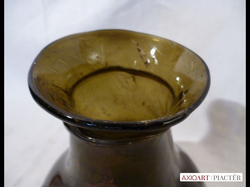Teljesen hibátlan, 1820-50 körüli antik, nyakán fonal díszes üvegváza.