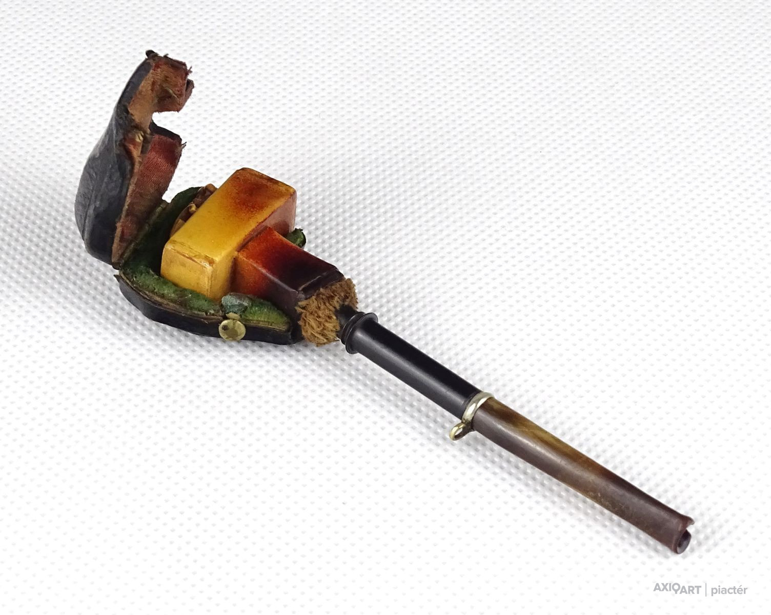 Antik főúri koronás tajtékpipa ópiumpipa szipkával tokjában