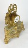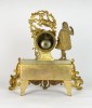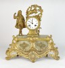 [0R207/UZ-K] Működő állapotban lévő, ingás, 8 napos járású, csengettyűs, kétkulcsos feles ütős kandalló óra. Anyaga alabástrom és aranyozott spiáter. Rajta francia alak és kecske díszítés. (Javított.) A szerkezet hátulján a csengő alatt felirat, dátum: 1860 A lábon hátul felirat: CAMUS Magasság: 38 cm Szélesség: 37 cm Súly: 3.25 kg